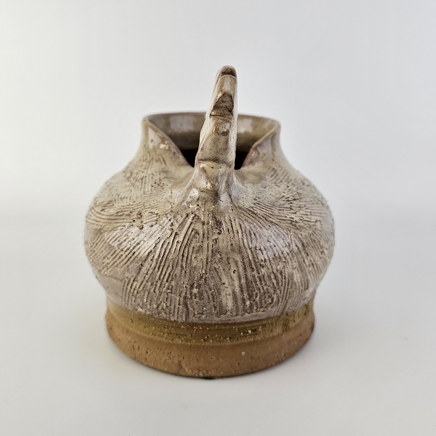 Vase med form som en høne i brunlig glaseret keramik