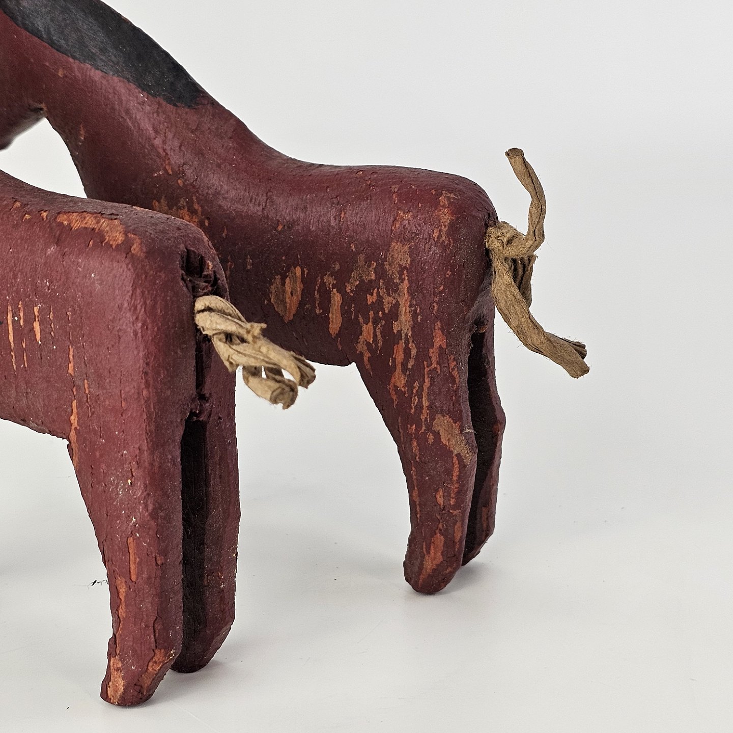 Figurer i malet træ med motiv af heste, formentlig fremstillet som fængselsarbejde