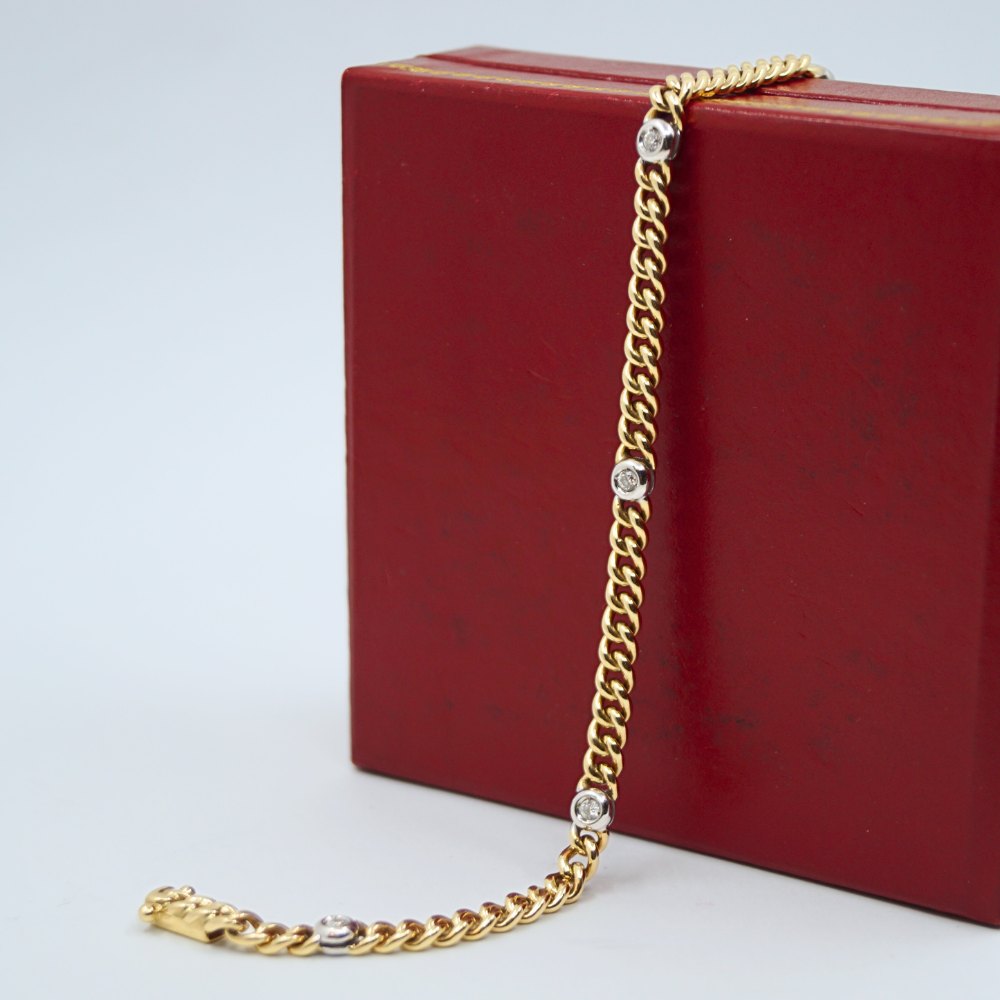 Panser armbånd af 14 kt. guld. prydet med 5 diamanter fattet i hvidguld, i alt 0.24 ct. W VS.