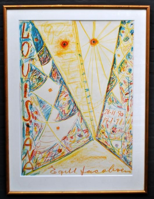 Jacobsen, Egill (1910 - 1998) Danmark: Louisiana udstillings plakat, 1970-1971. Farvelitografi. Unummereret. Signeret i trykket. H: 85 cm. B: 61 cm.