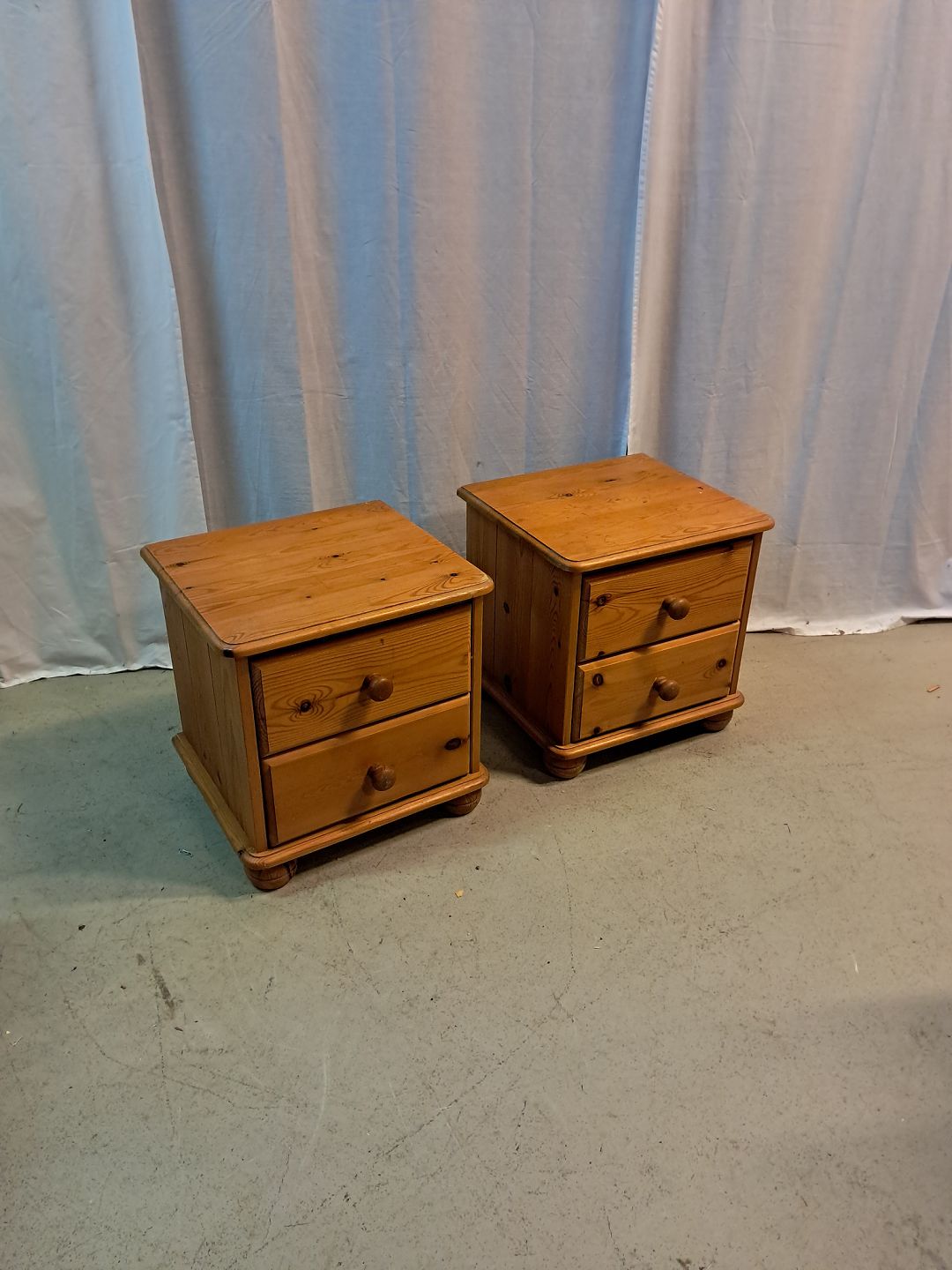 2 Små kommoder i massivt fyrretræ, fra 1980erne.