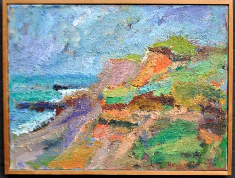 Dansk kunstner (20. årh.): Klitter ved havet. Olie på lærred. Signeret. 65 x 85 cm..  Indrammet: 69 x 89 cm.  Antagelig Henny Møller.