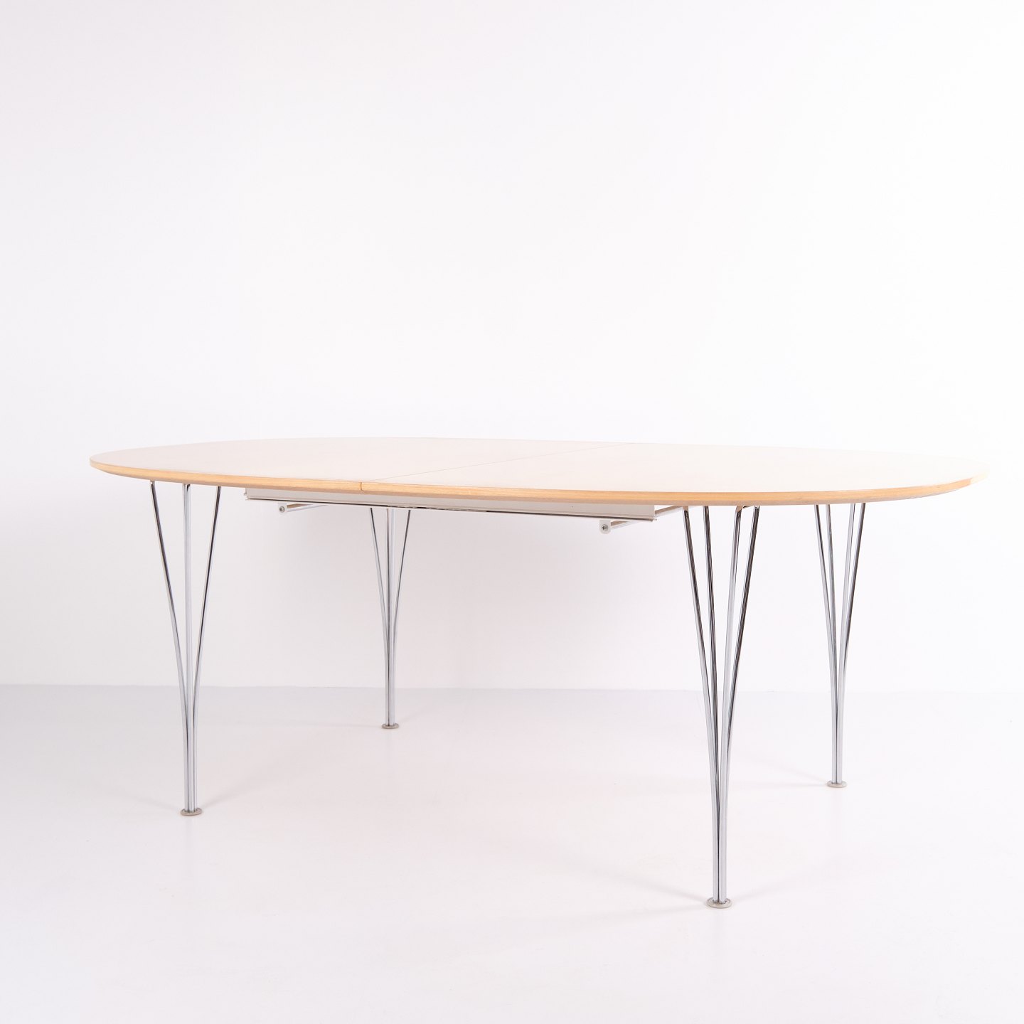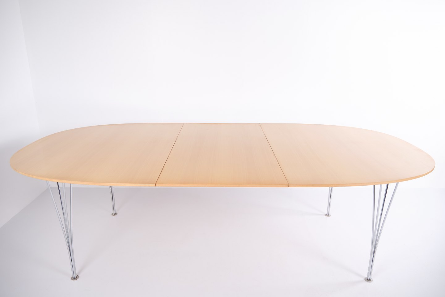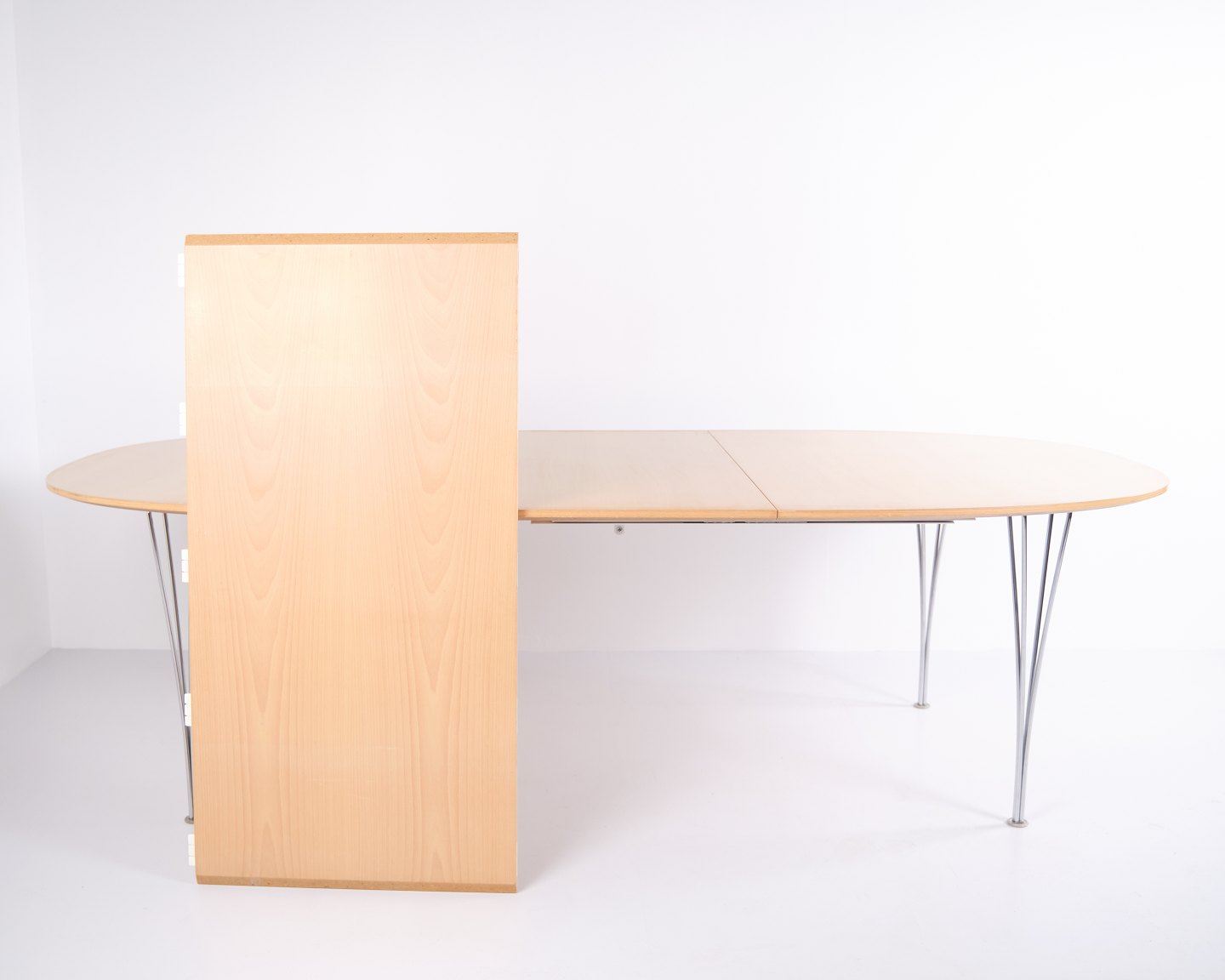 Super Ellipse spisebord af Piet Hein & Bruno Mathsson for Fritz Hansen. Bøgetræ med 2 tillægsplader. Produceret 2001.