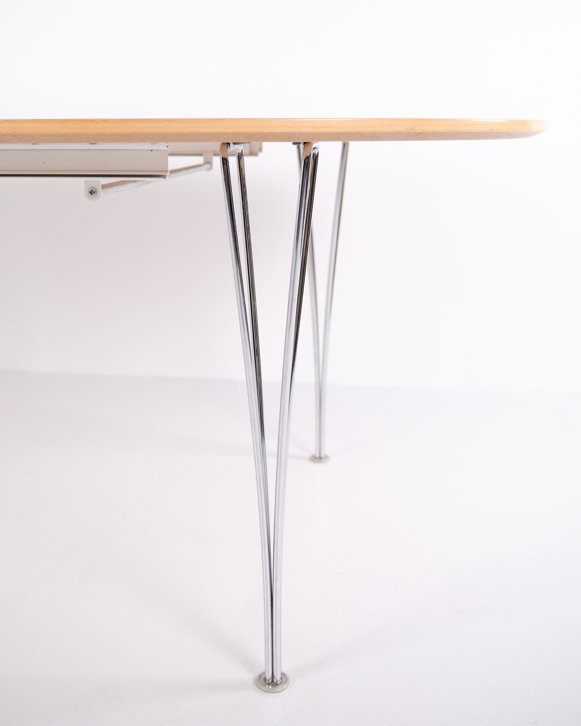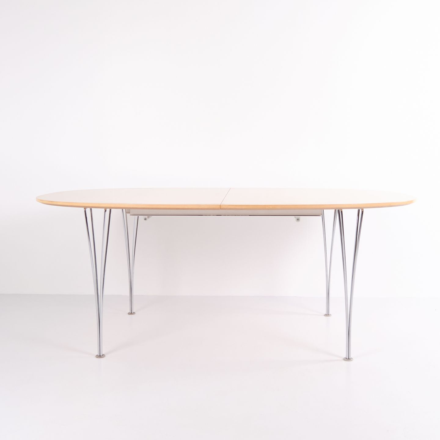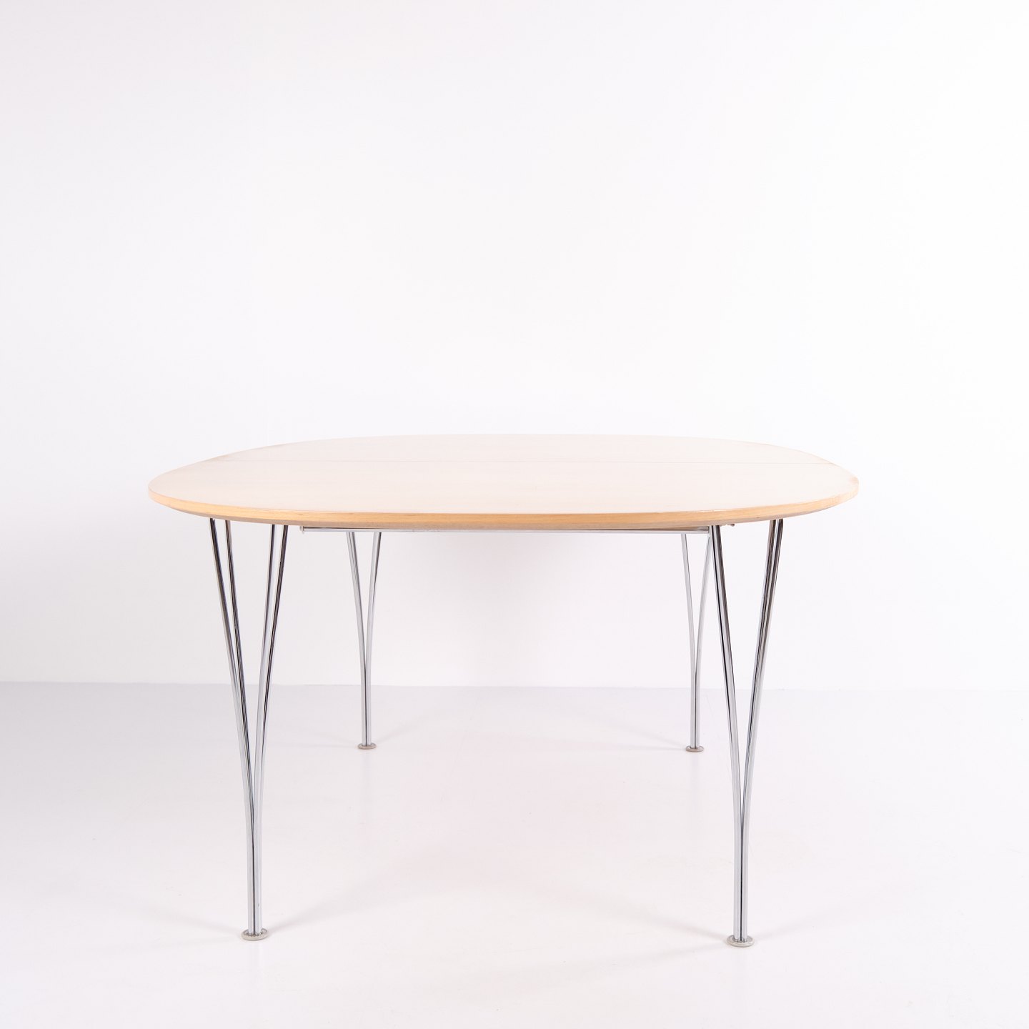 Super Ellipse spisebord af Piet Hein & Bruno Mathsson for Fritz Hansen. Bøgetræ med 2 tillægsplader. Produceret 2001.