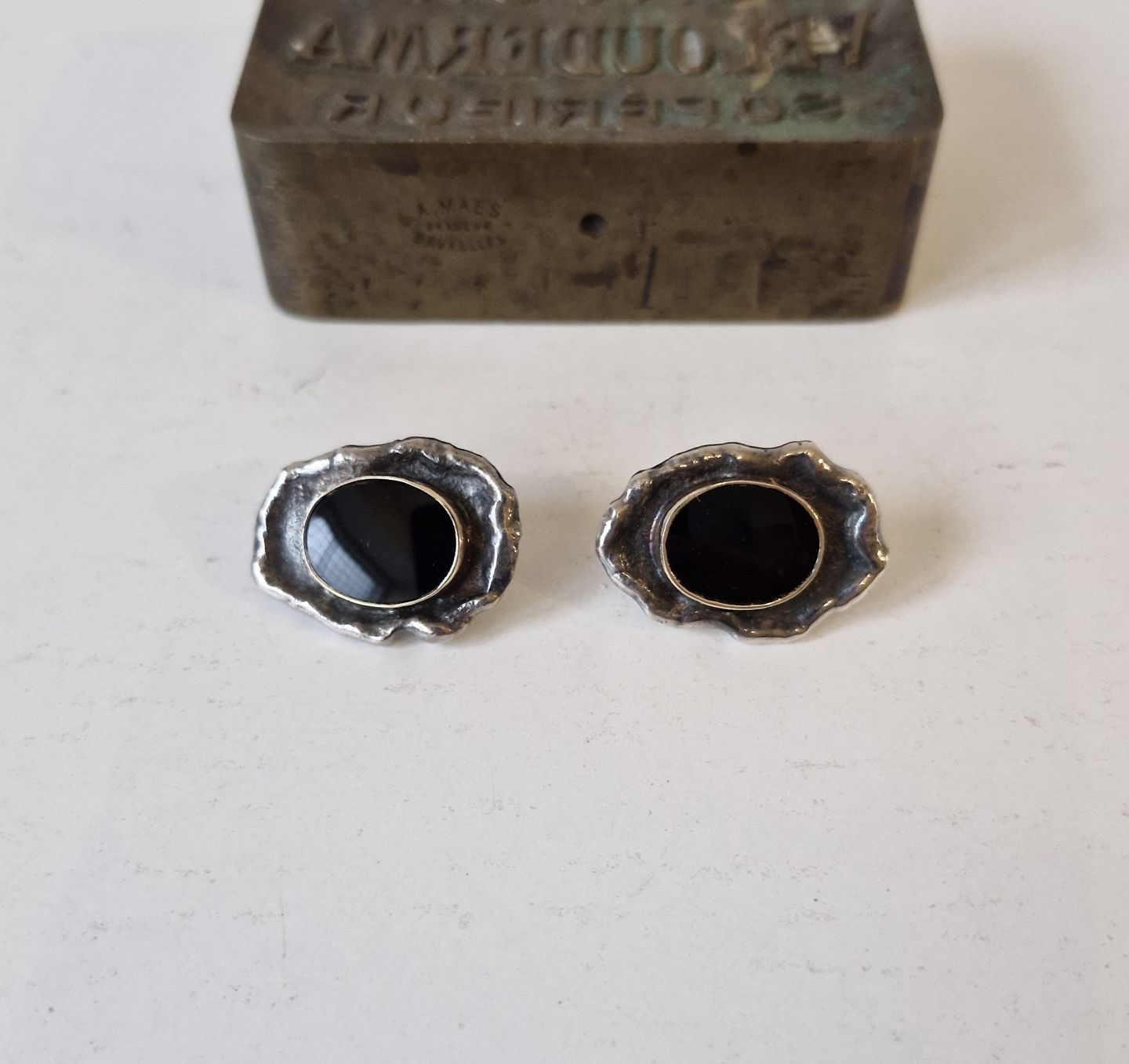Par store ørestikker i sterlingsølv med onyx af Niels Gunni Vase