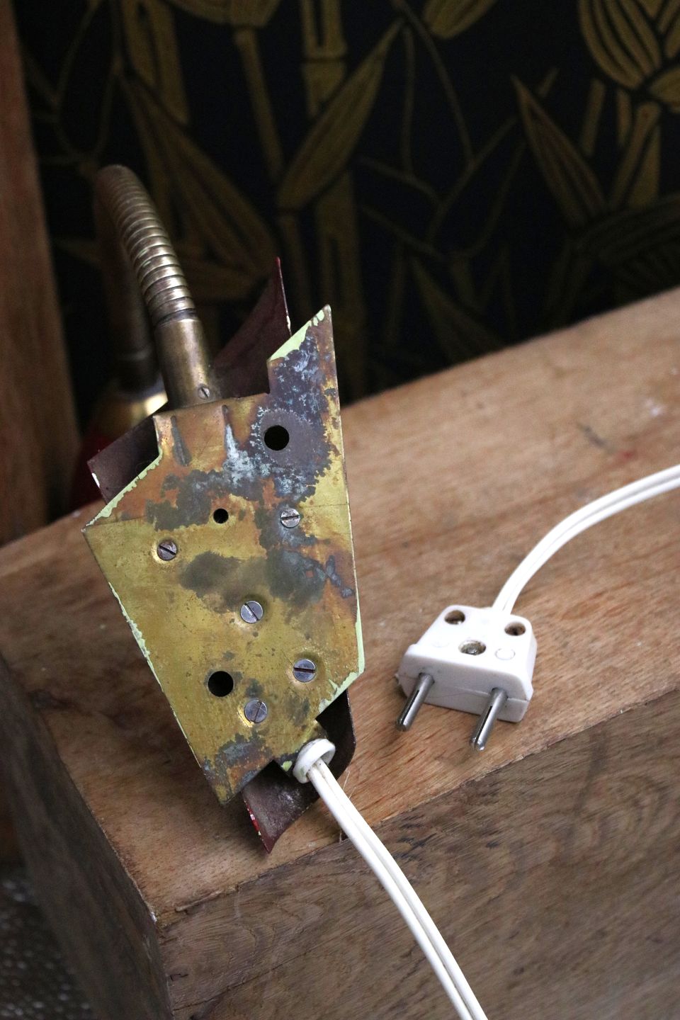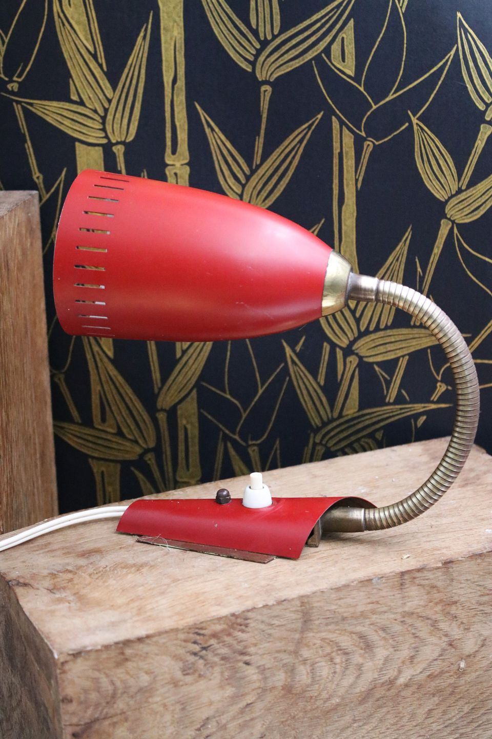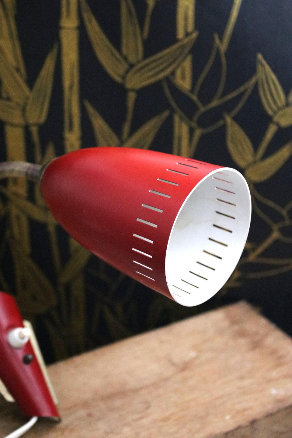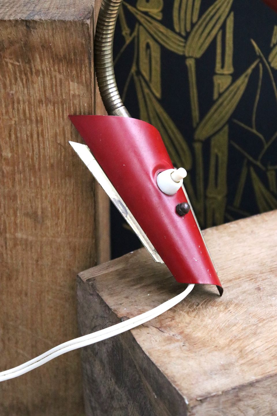A pair of old retro wall lamps in red painted metal and brass from the 50s. Lampshade L: 14cm. Dia: 8.5cm.
