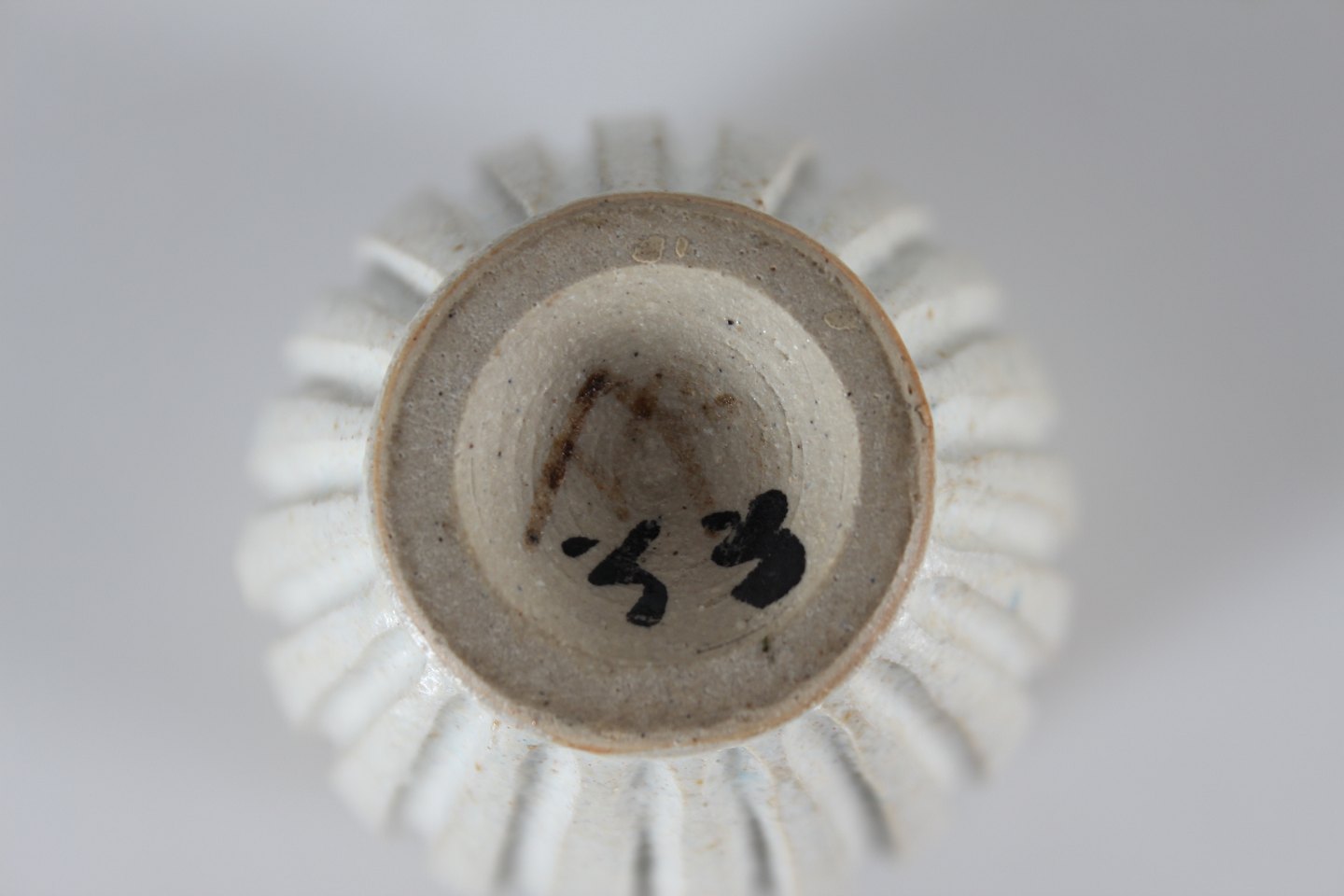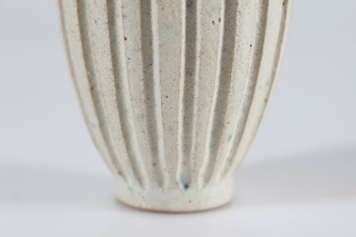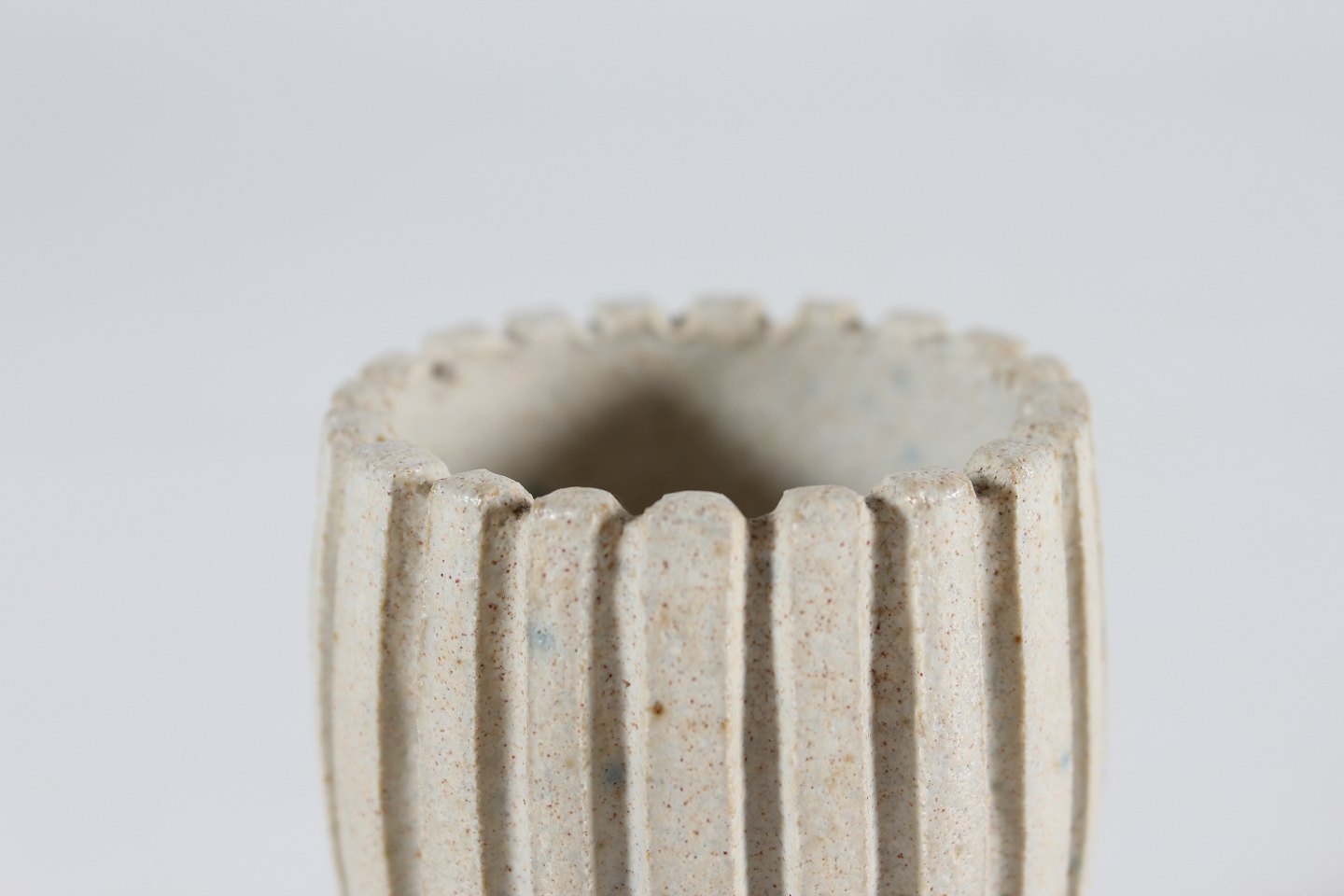 Lille Art Deco vase i rillet stil af sandfarvet stentøj
