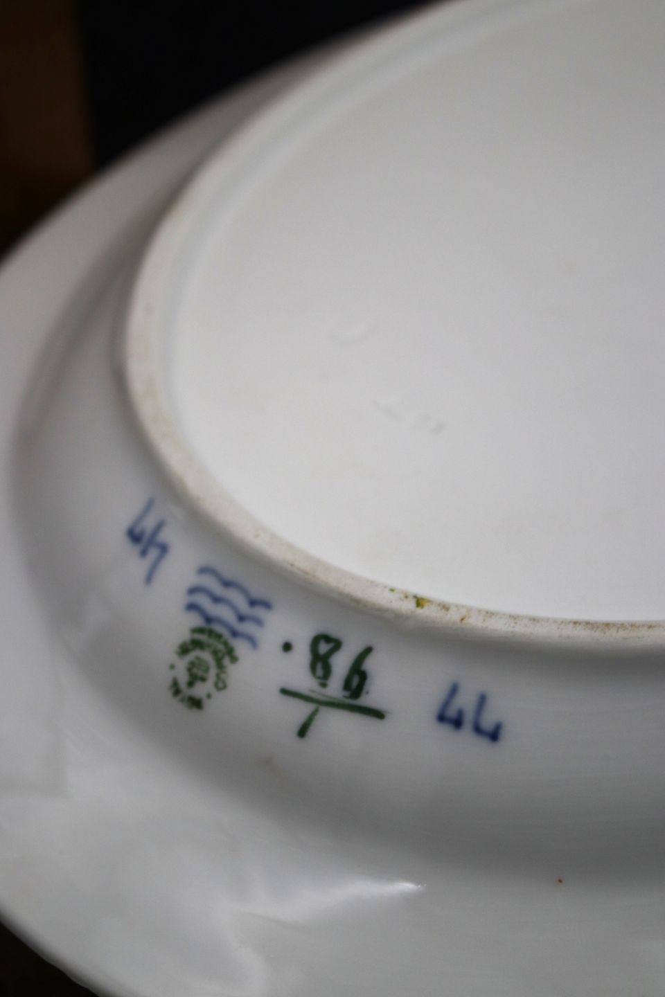 Antikt Musselmalet Riflet ovalt fad fra Royal Copenhagen