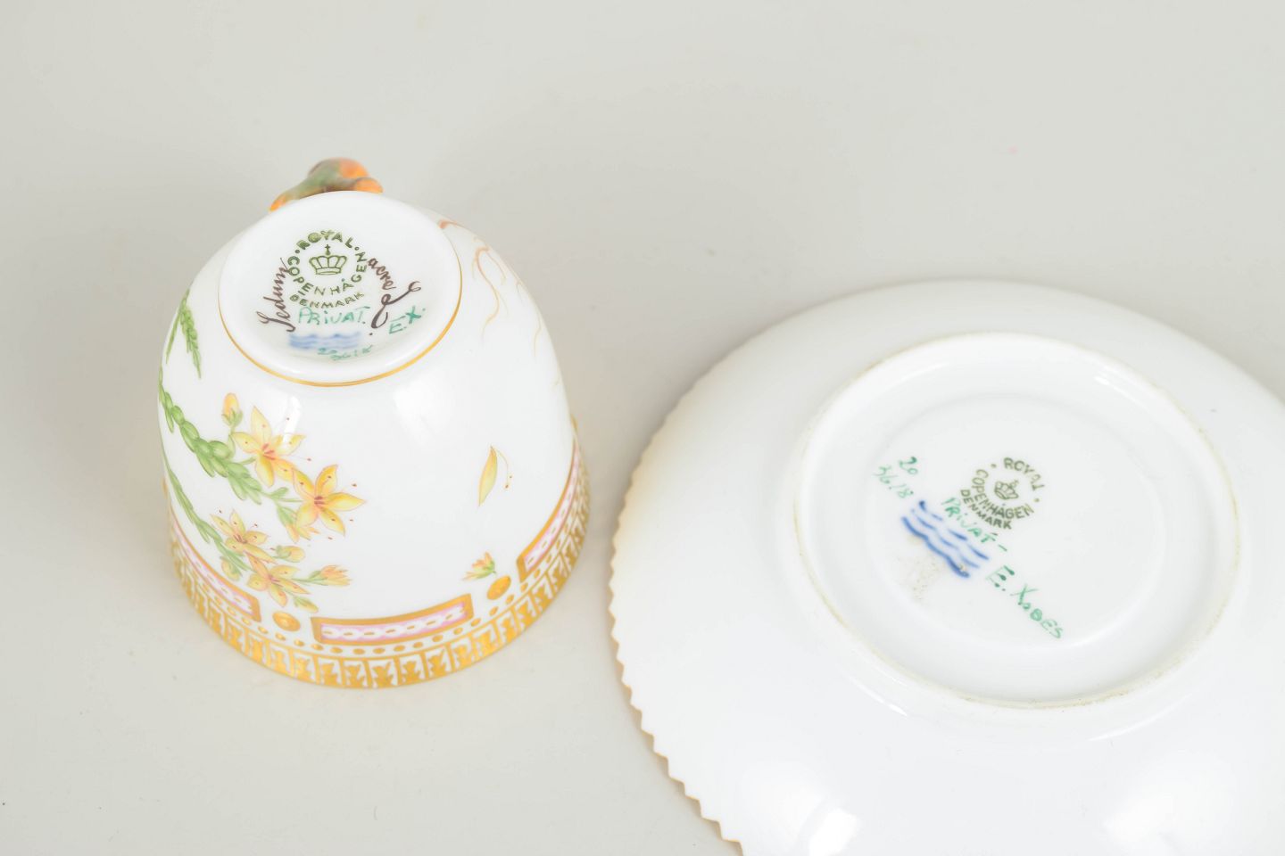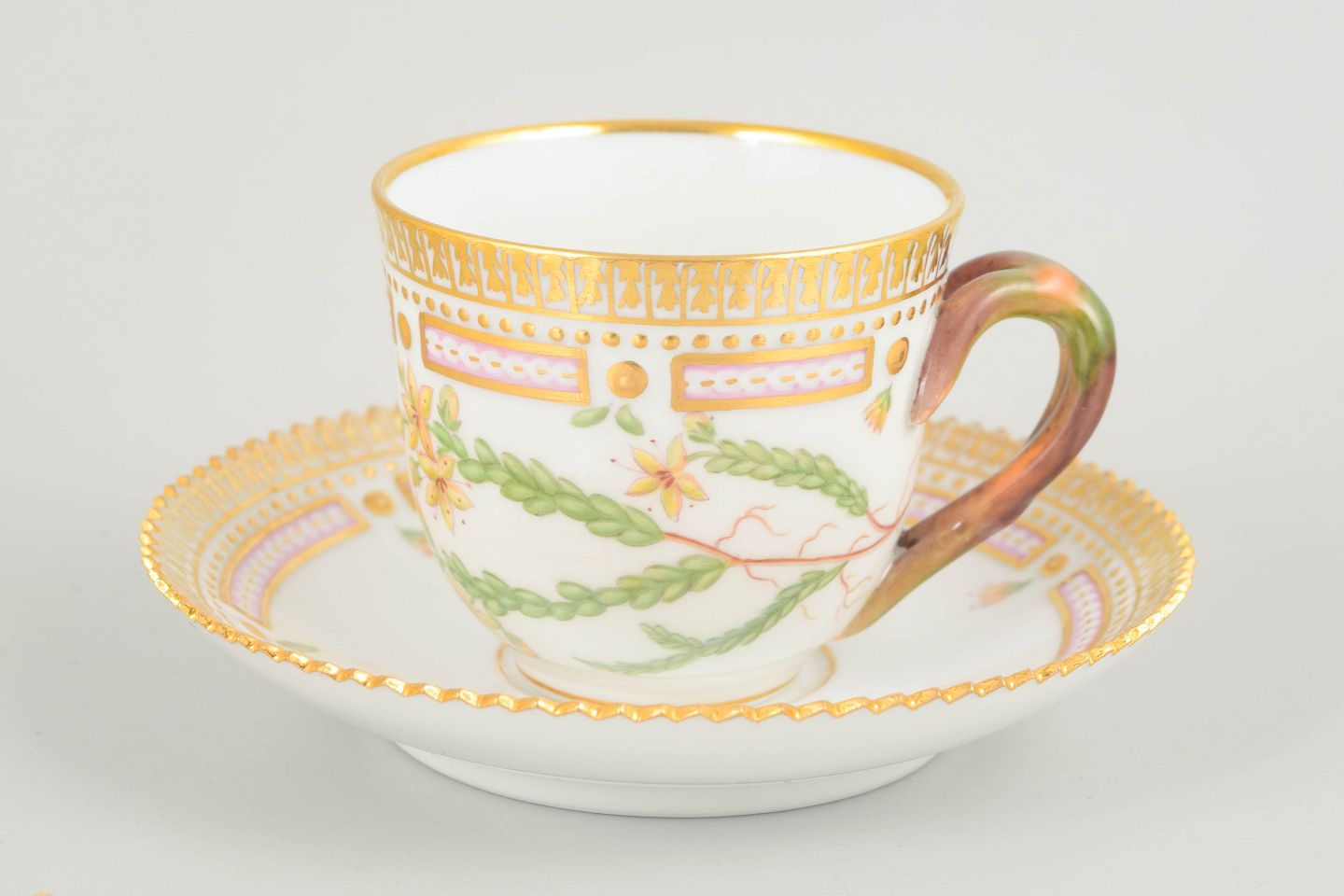 Bio: Flora Danica-stellet blev introduceret i 1790 og regnes blandt Royal Copenhagens mest prestigefyldte produktioner. Dekorationerne er baseret på det monumentale botaniske værk Flora Danica og er kendetegnet ved høj detaljerigdom og fremragende håndværksmæssig kvalitet. Demitassekopper var traditionelt anvendt til servering af stærk kaffe og repræsenterer en raffineret del af det klassiske kaffestel.