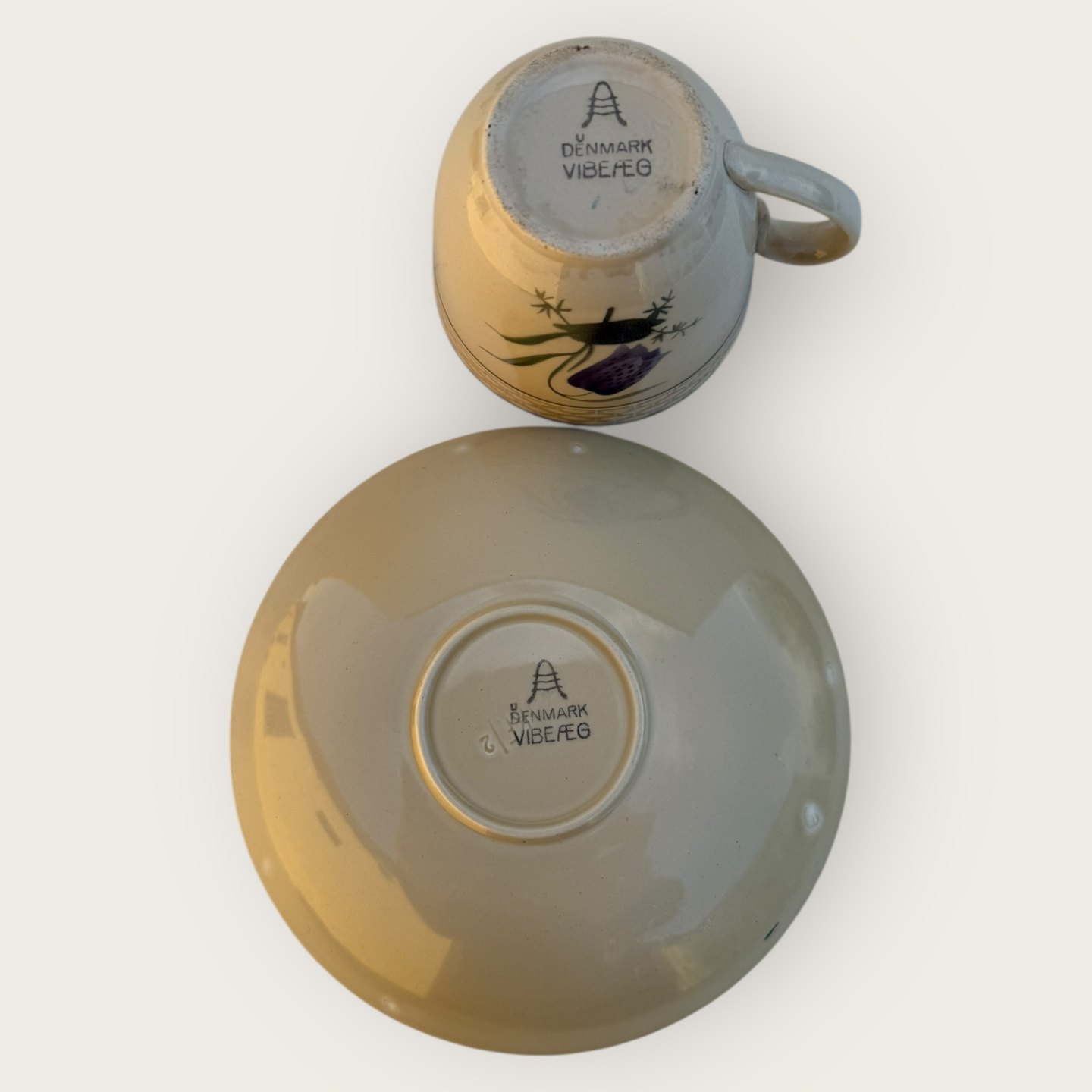 Royal Copenhagen, Aluminia, Victoria II stelform, Vibeæg, Fritillaria meleagris, Kaffekop, kop diameter 7,5cm, højde 6cm, underkop diameter 13,5cm *pæn stand*