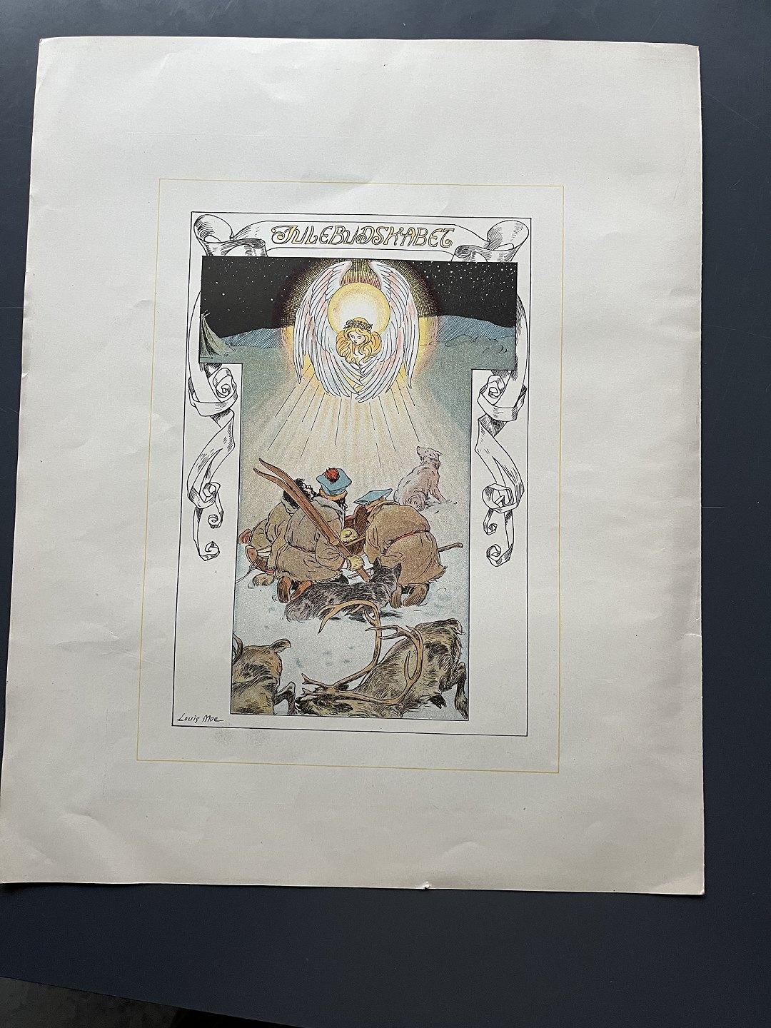 Litografisk tryk af Louis Moe - Julebudskabet.