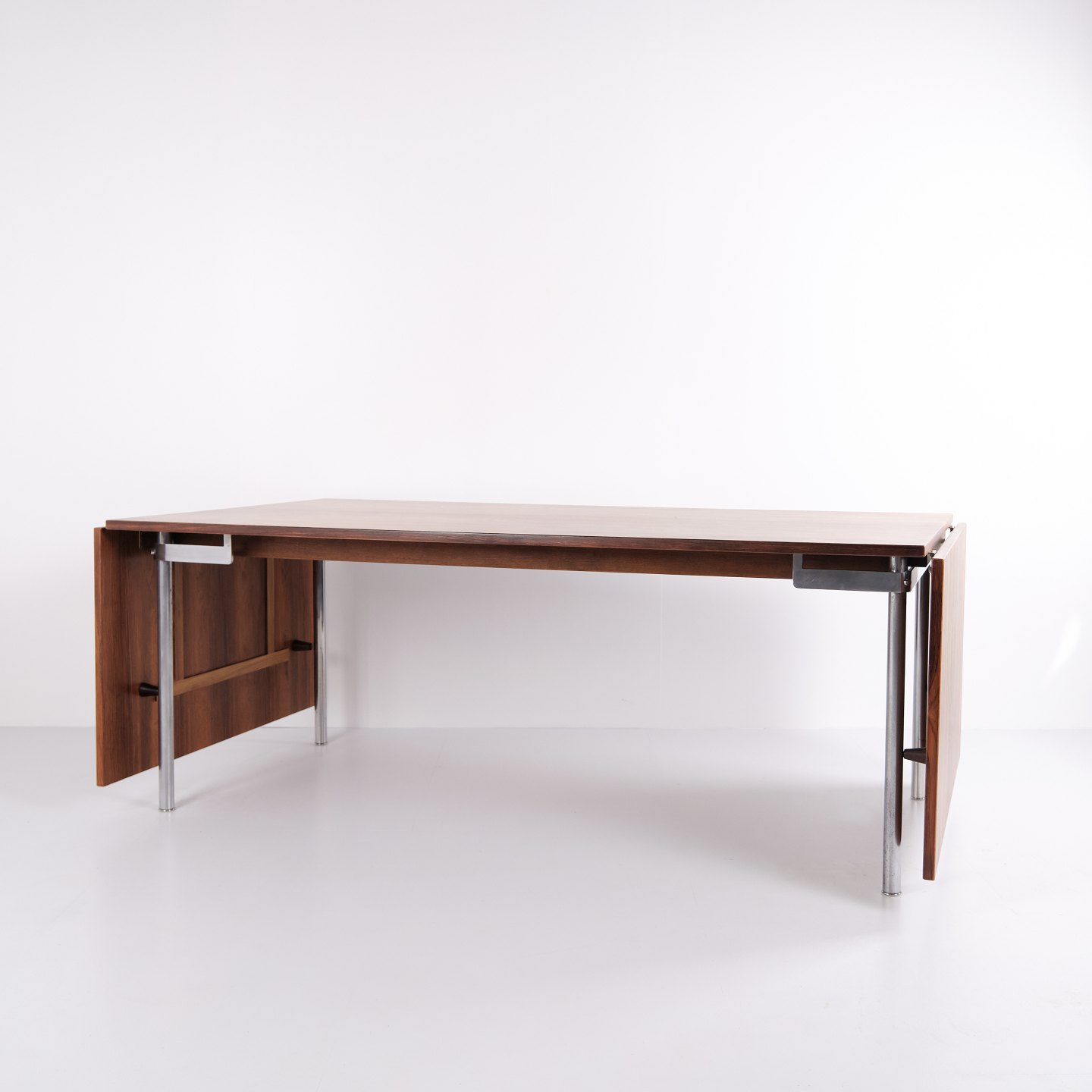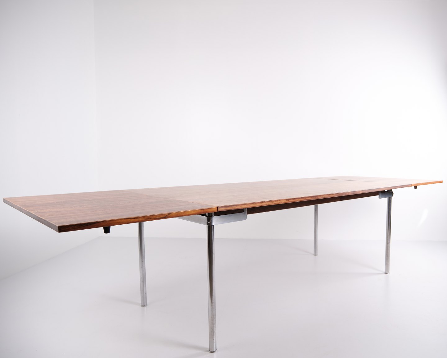 Spisebord model AT 319 af Hans J. Wegner for Andreas Tuck. Riopalisander med stålben og 2 tillægsplader. Dansk design fra 1960’erne.