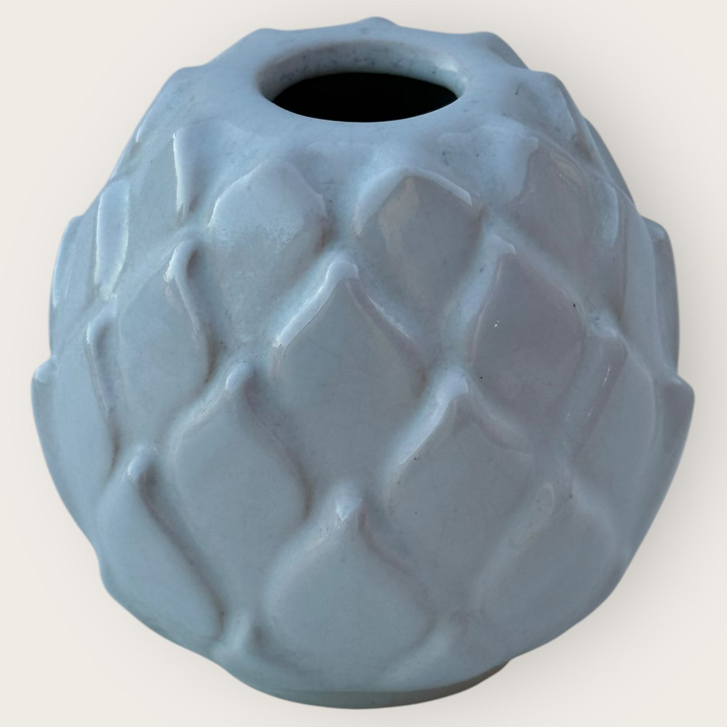 | Bornholmsk keramik, Michael Andersen, Hvid keramikvase, #5103, ca. 8,5cm høj*Fremstår med 2 små afslag/reparationer (se de sidste 2 foto)*