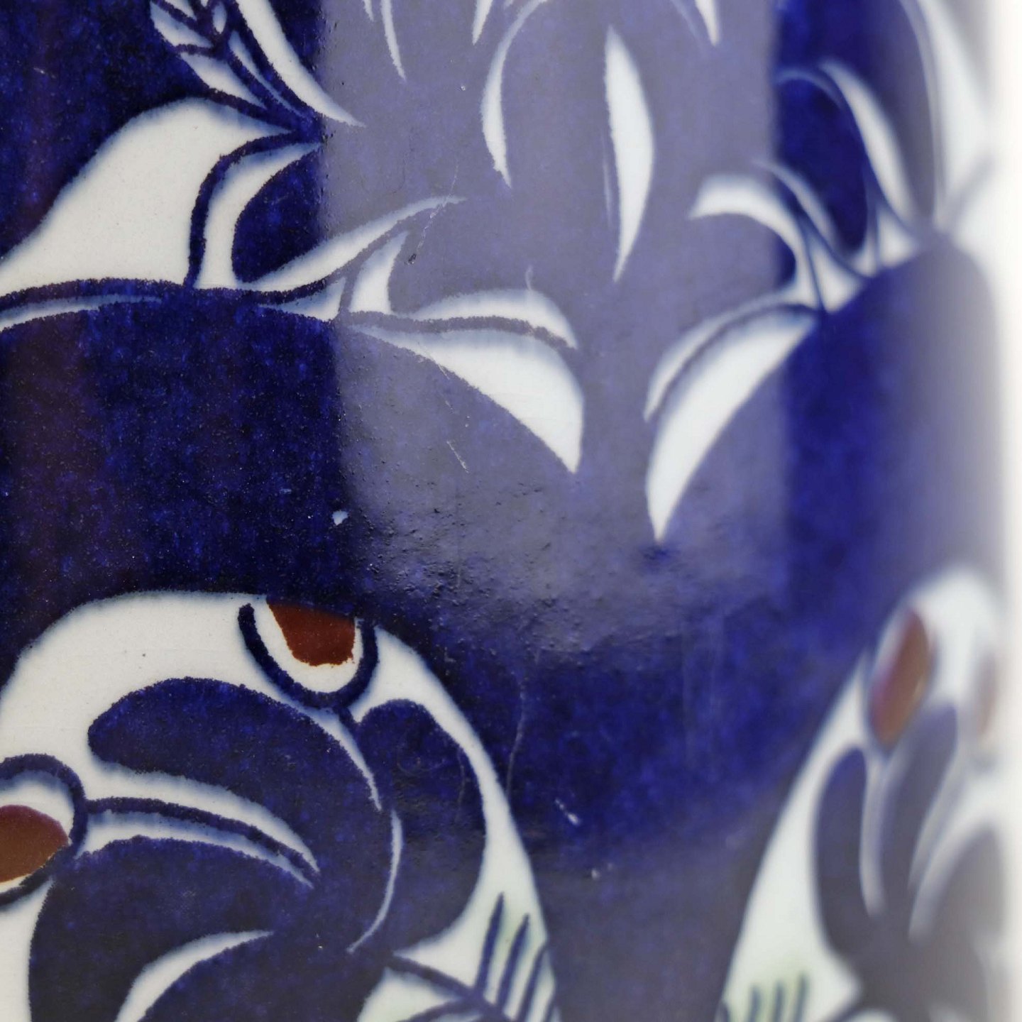 Vase i fajance fra Tenera serien med let krakkeleret glasur og blåt abstrakt blomstermønster. Nr. 207/2967