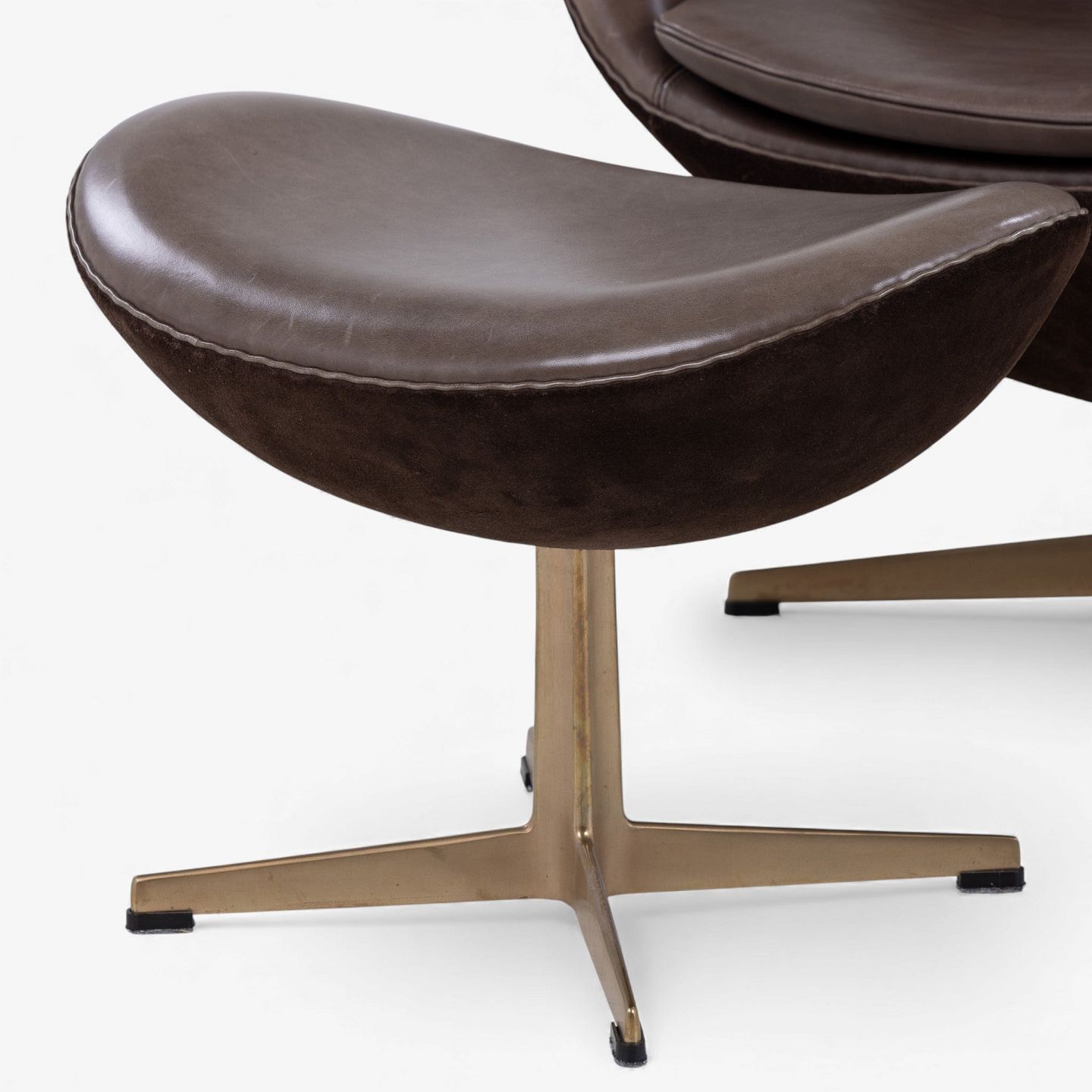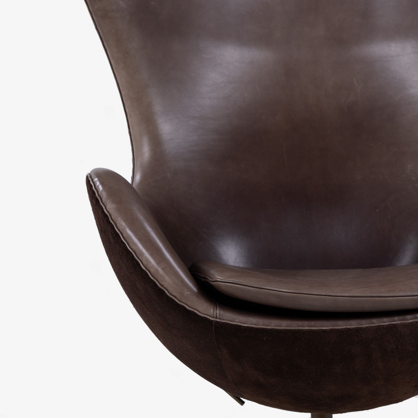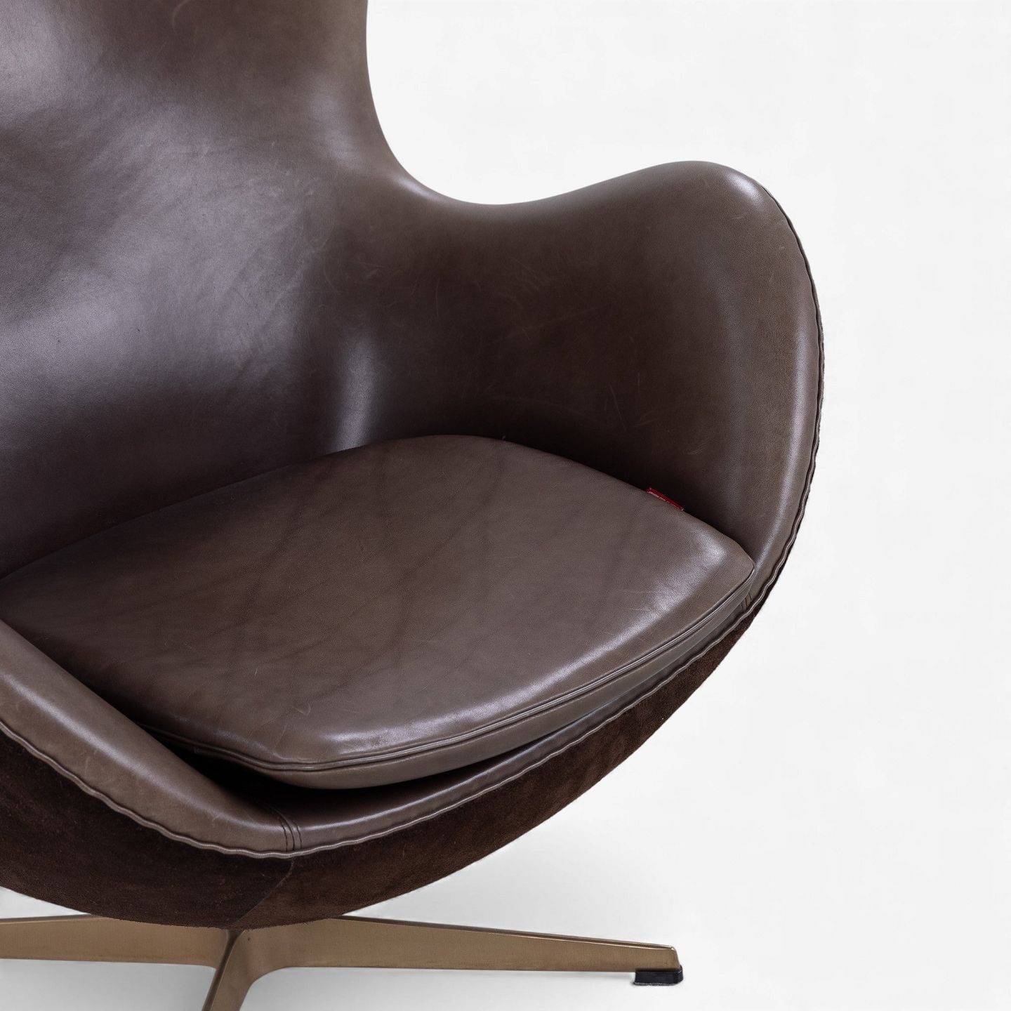 AJ 3316 - 'Ægget'-lænestol m. skammel i originalt, mørkebrunt Elegance-læder og brunt ruskind på stel i bronze. Jubilæumsmodel fra 2008. Nummeret 489/999.