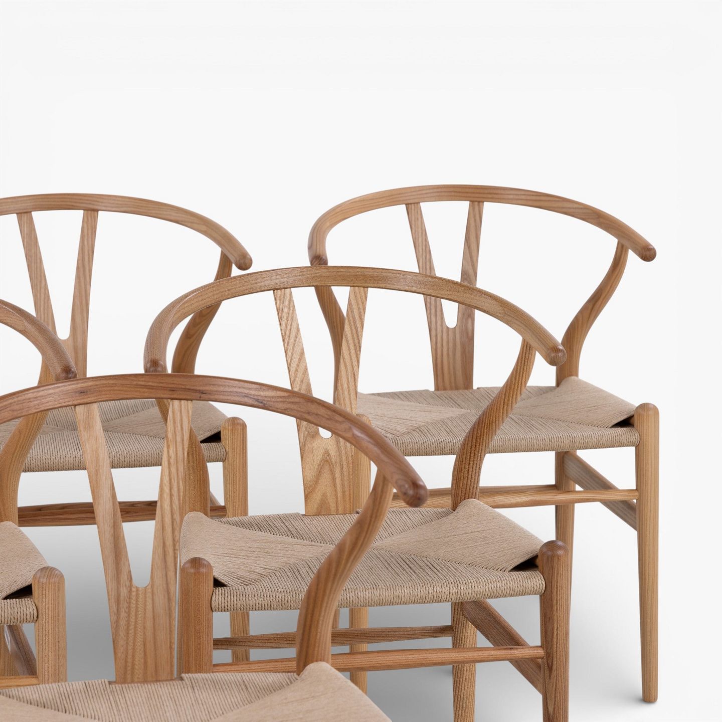 CH 24 - Sæt á 6 spisestole i elm med sæde i flettet papirgarn. Mærket fra producent. Limited Edition fra 2017.