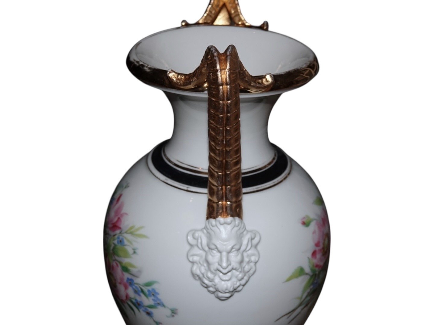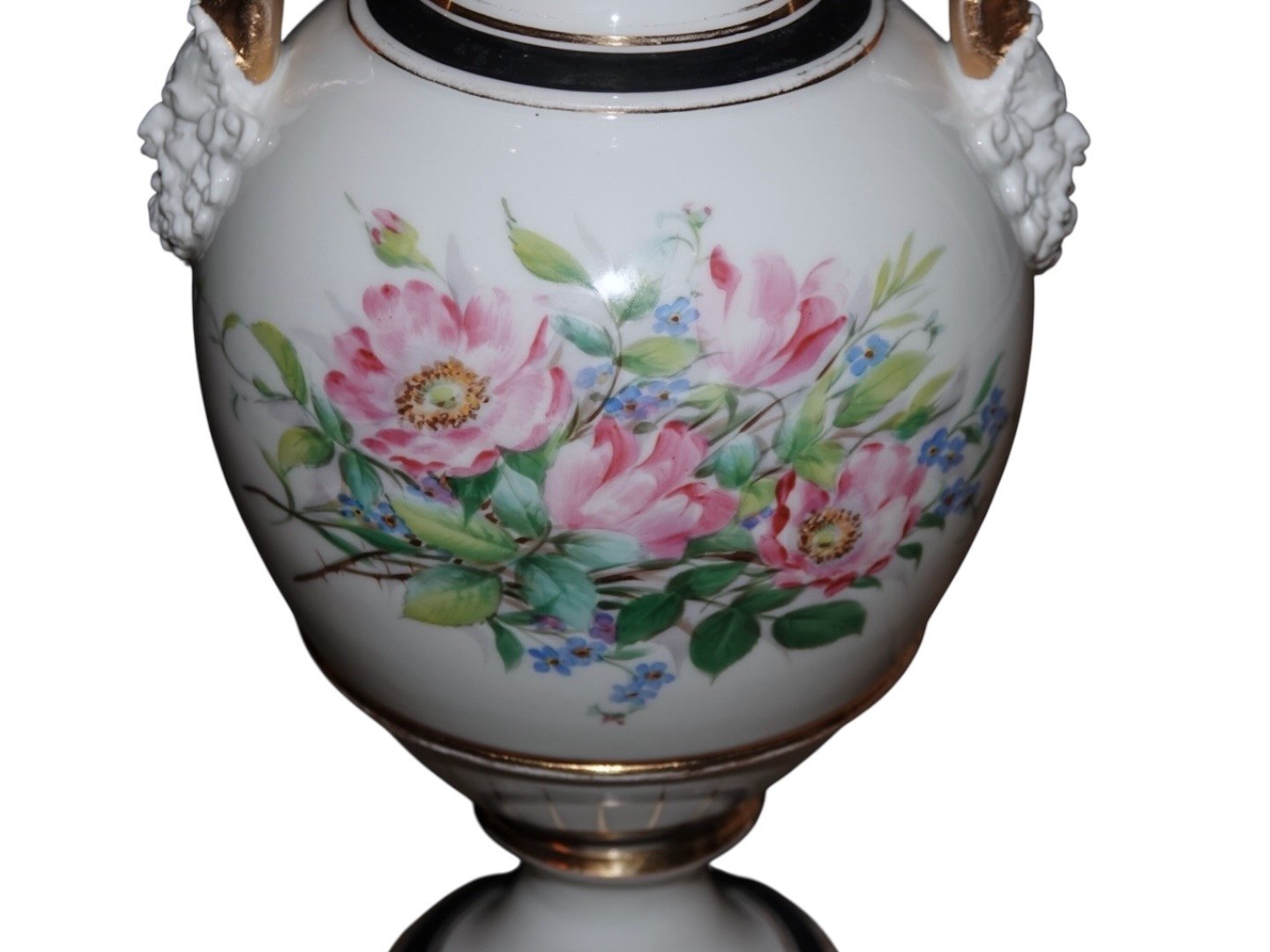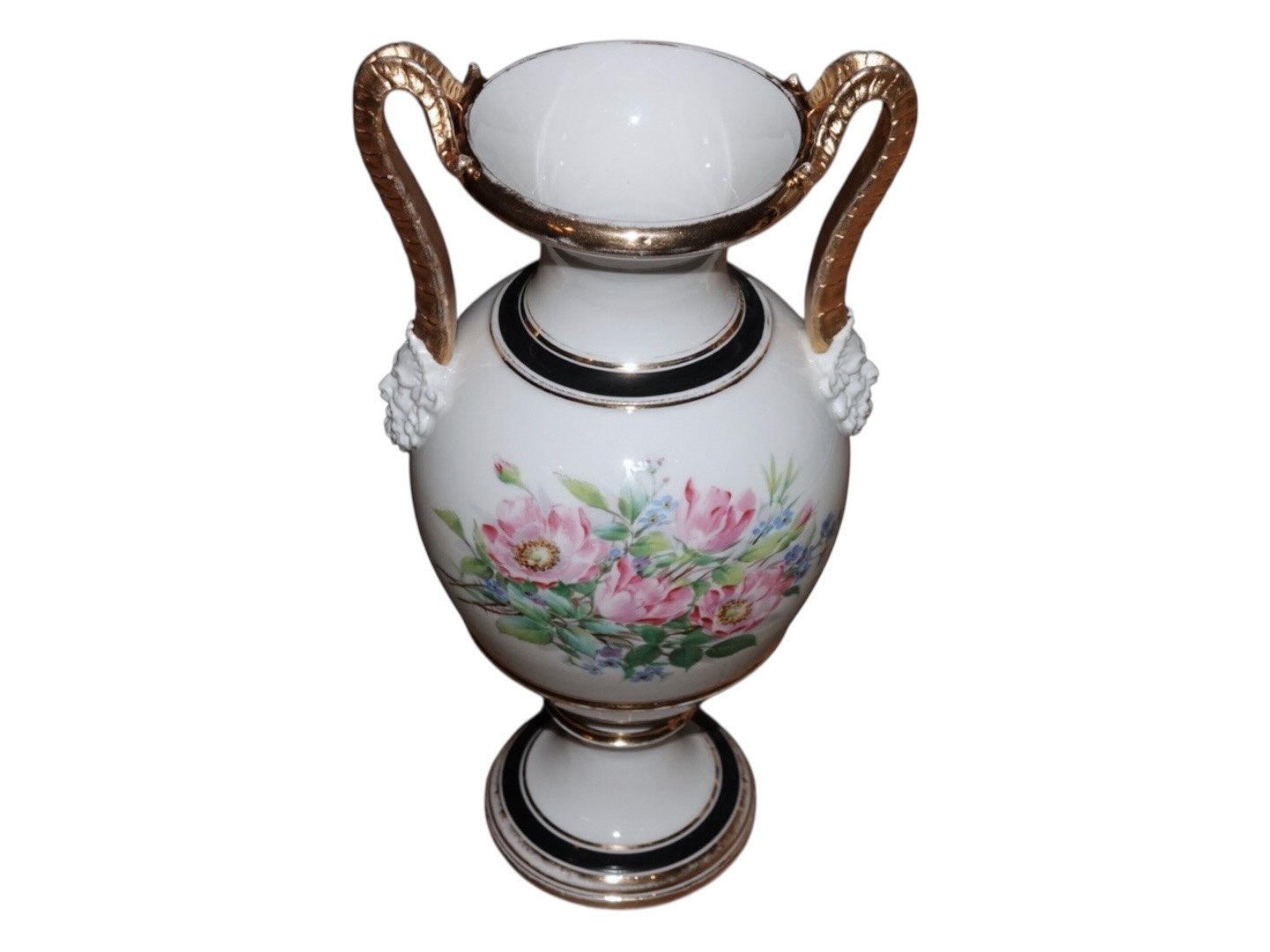 Høj antik vase med lyserøde Vilde Roser fra 1853-1895