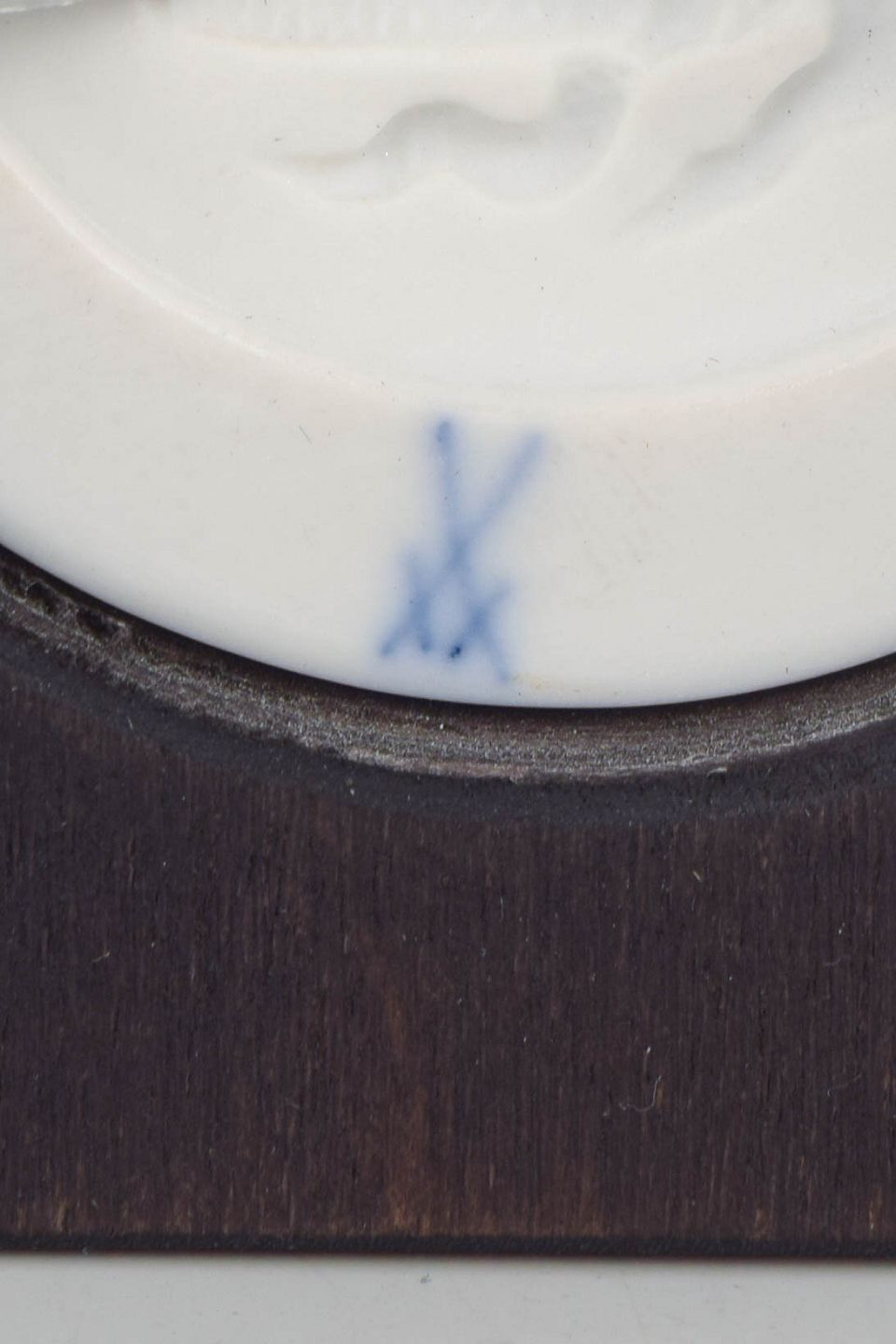 Meissen, grundlagt i 1710, er Europas ældste porcelænsfabrik og kendt for sin høje kunstneriske og håndværksmæssige kvalitet. Biscuitporcelæn har været anvendt hos Meissen siden 1700-tallet og er særligt velegnet til relieffer og portrætter, hvor den matte, marmorlignende overflade understreger det skulpturelle udtryk.