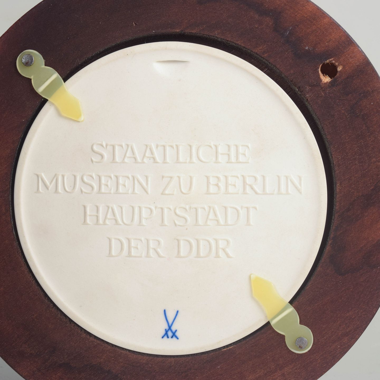 Meissen, grundlagt i 1710, er Europas ældste porcelænsfabrik og internationalt anerkendt for sit høje kunstneriske og håndværksmæssige niveau. Biscuit porcelæn har været anvendt hos Meissen siden 1700-tallet og benyttes ofte til historiske portræt- og reliefplaketter inspireret af klassiske medaljer. Den matte, marmorlignende overflade giver værkerne et skulpturelt og tidløst udtryk.