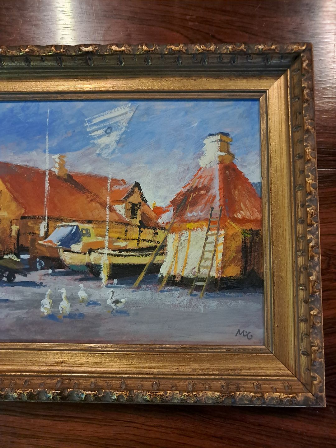 Maleri af Dragør Havn i guldmalet ramme, af : Mogens Amdi Thorsen (1924-2016)