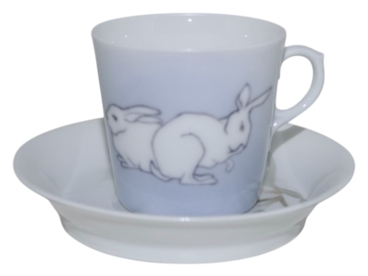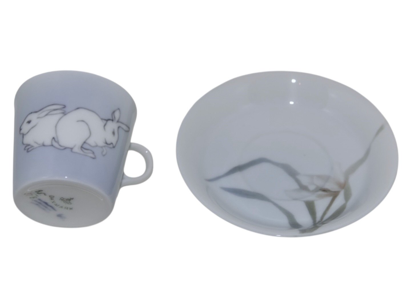Royal Copenhagen, small Art Nouveau coffee cup with matching saucer. The cup is decorated with two white rabbits.