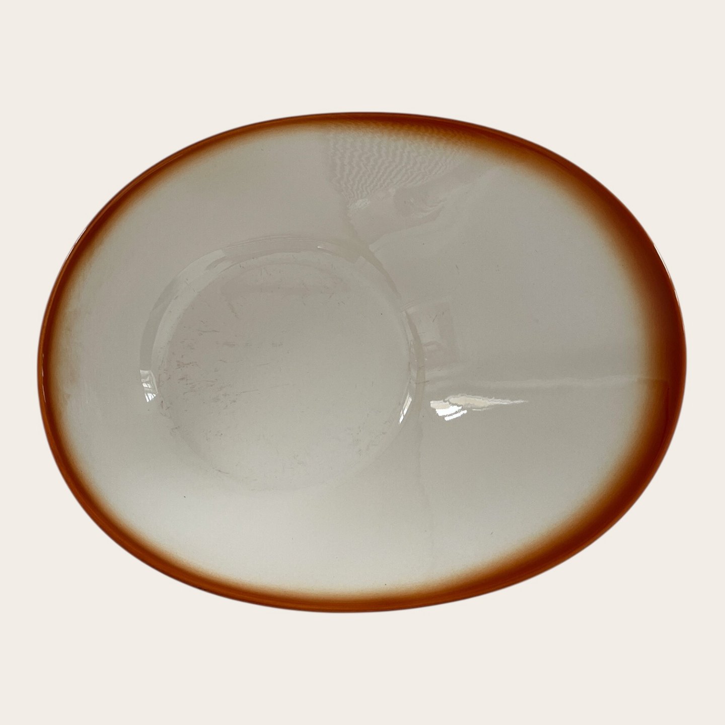 | Royal Copenhagen, Aluminia, Ursula #578, Asymmetrisk skål, Brun / hvid, 1. sortering, 30,5cm lang, 24cm bred, 8cm høj, Design Ursula Munch Petersen *Med brugsspor*