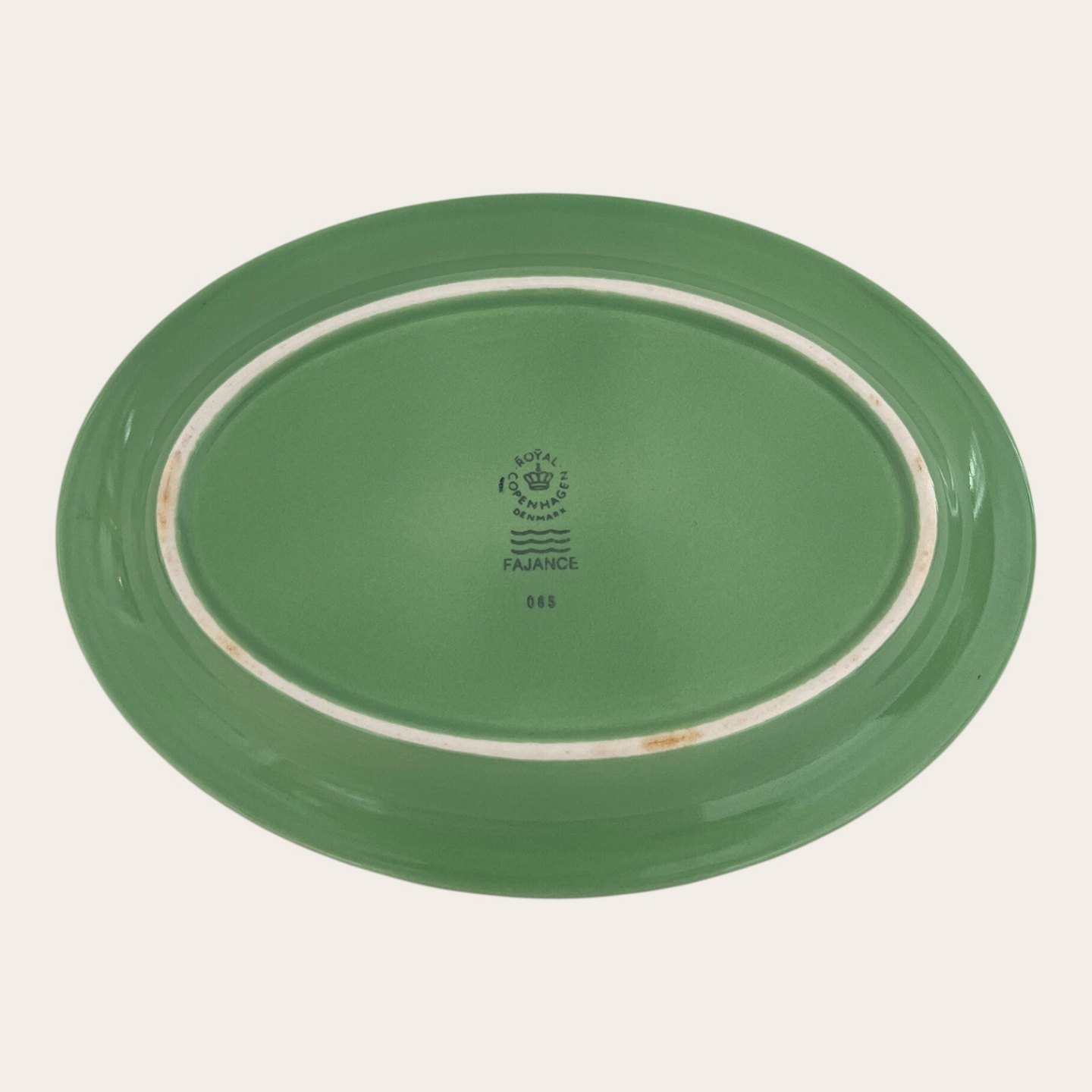 | Royal Copenhagen, Aluminia, Tallerken, Lys grøn #085, 1. sortering, 22cm lang, 16cm bred, design Ursula Munch Petersen *Pæn stand*