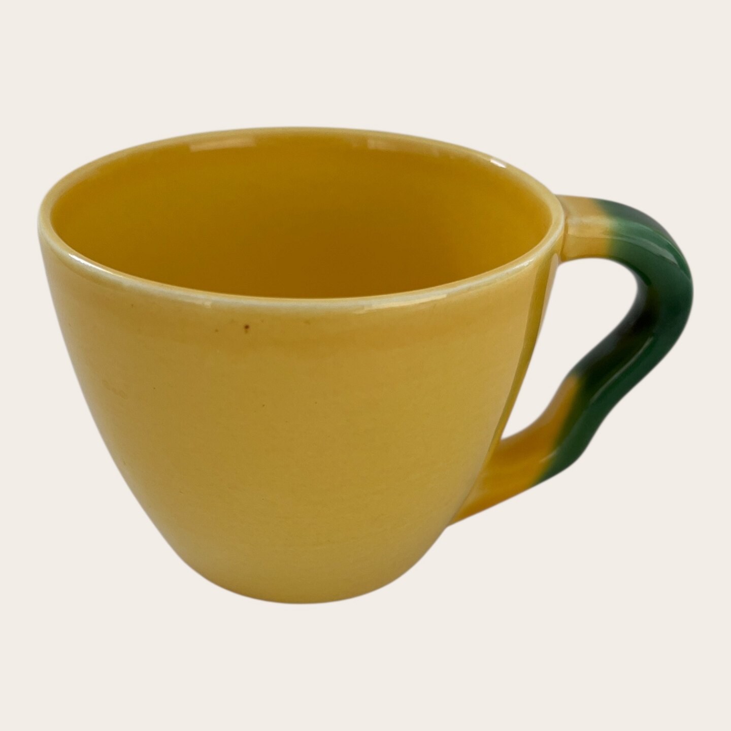 | Royal Copenhagen, Aluminia, Ursula, Kaffekop Gul/ Grøn #072, 1. sortering, 7cm høj, 10,5cm bred, 8,5cm i diameter, Design Ursula Munch Petersen *Pæn stand*