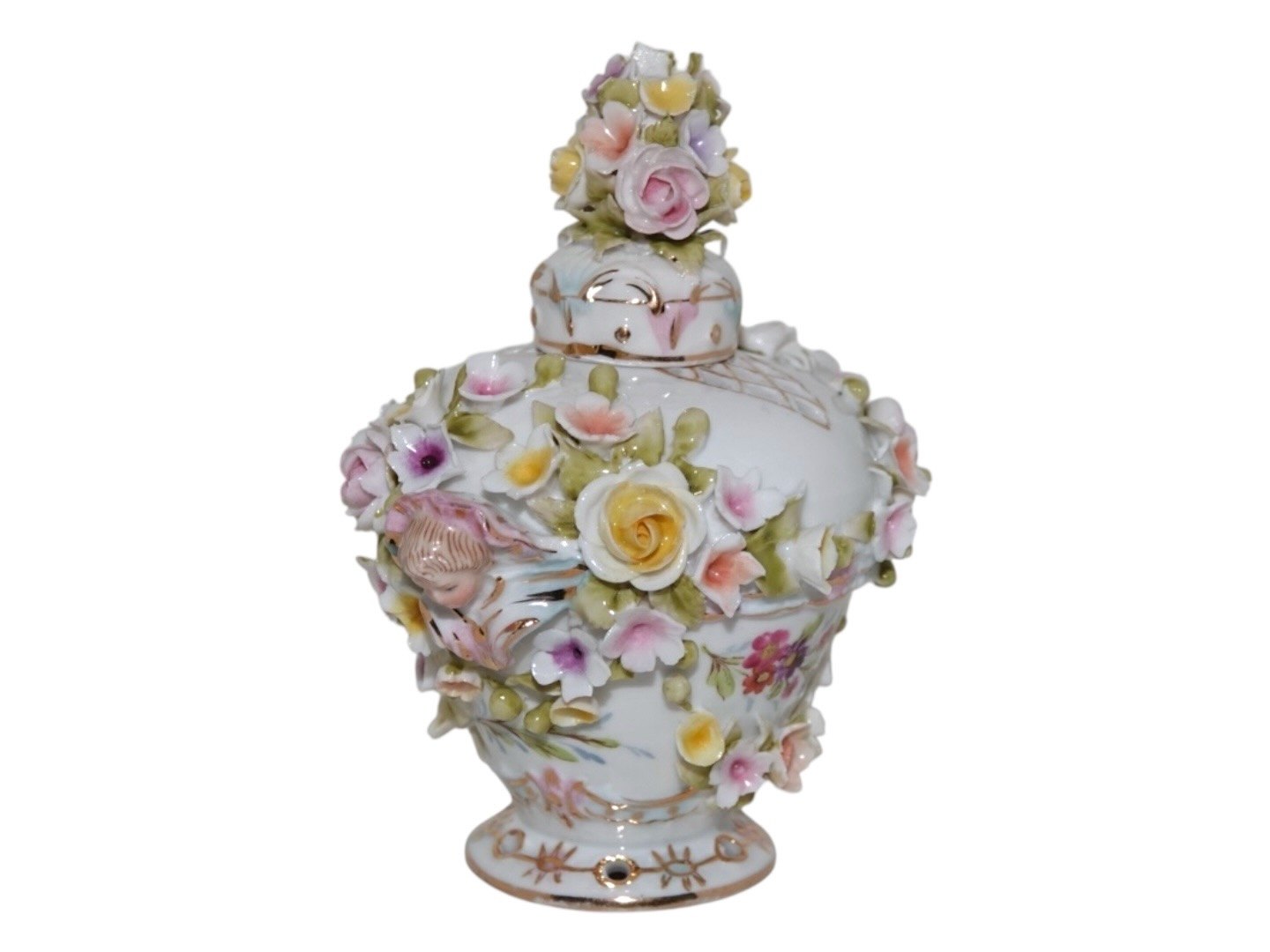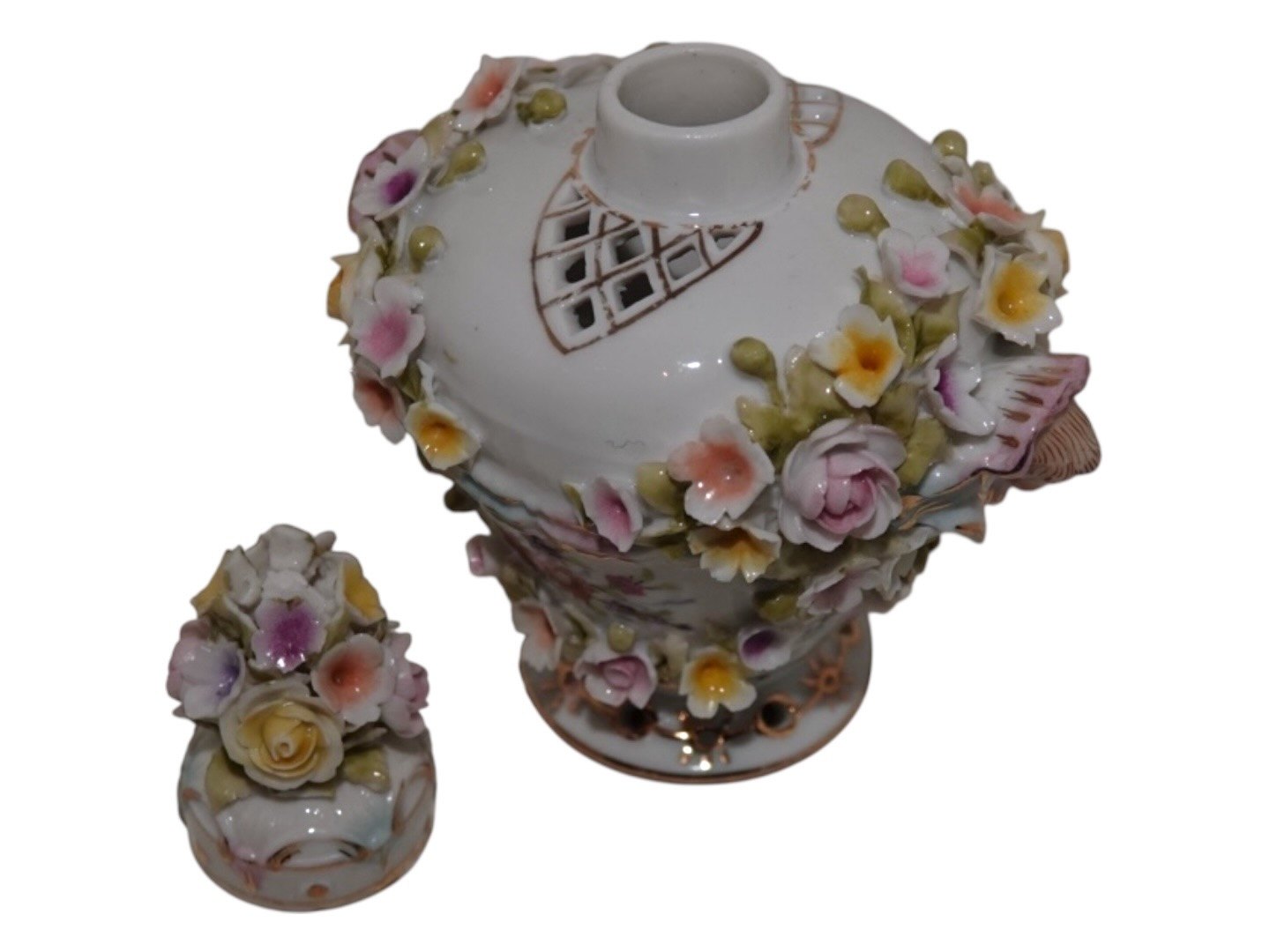 Tysk flakon i porcelæn med mange små blomster