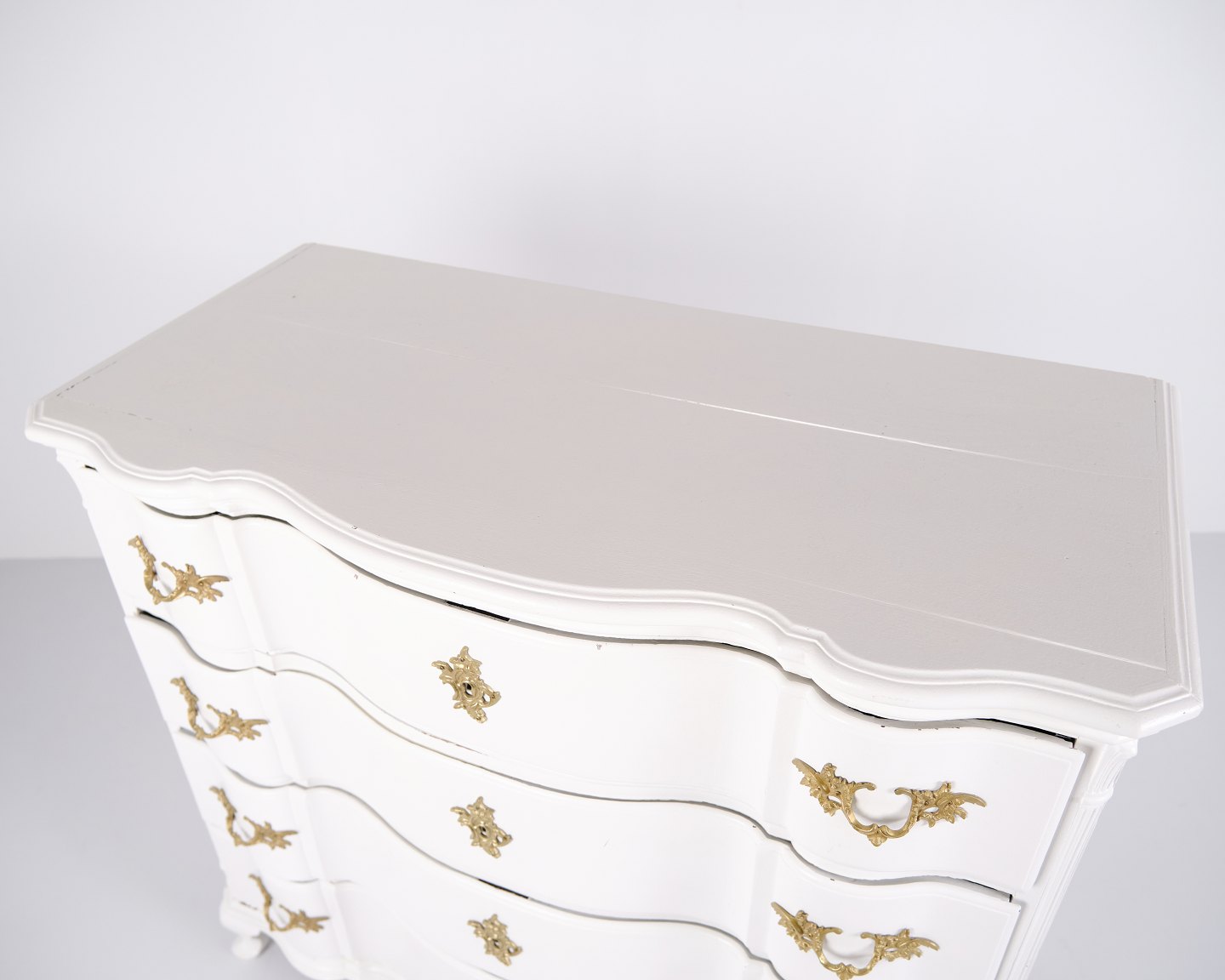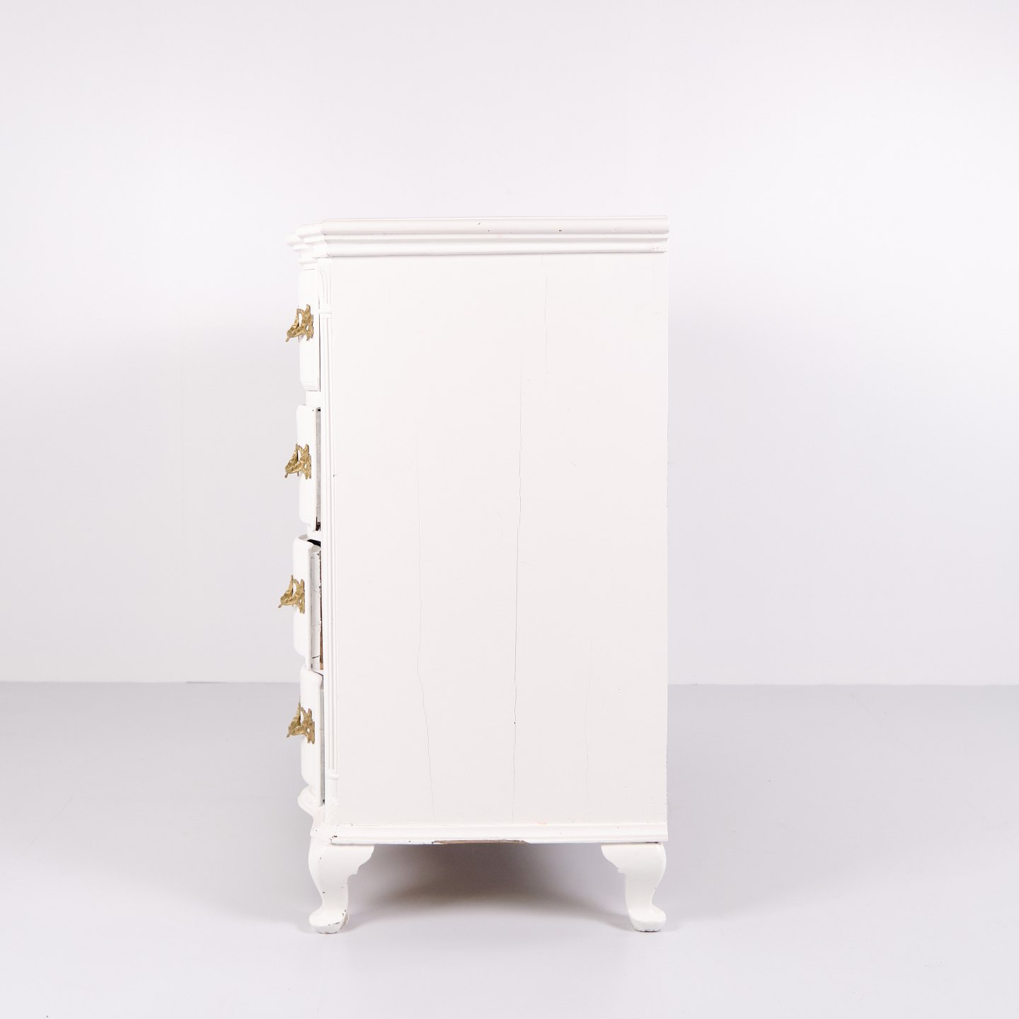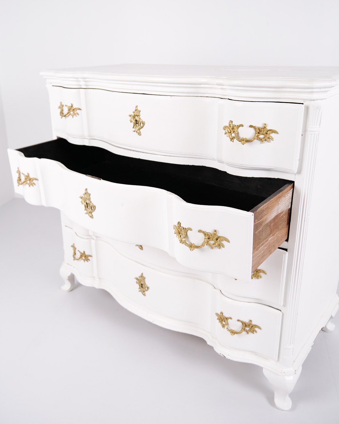 Antik Barok Kommode/Dragkiste Med 4 Skuffer - Barok - Hvidmalet & Messing Greb - 1760erne