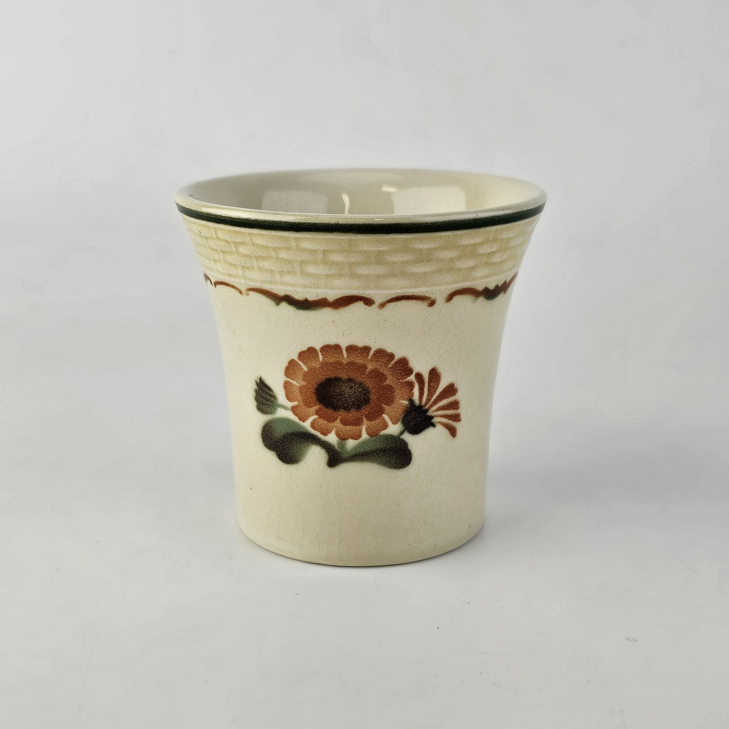 Fremstår med krakelering i glasuren og almindelige brugsspor