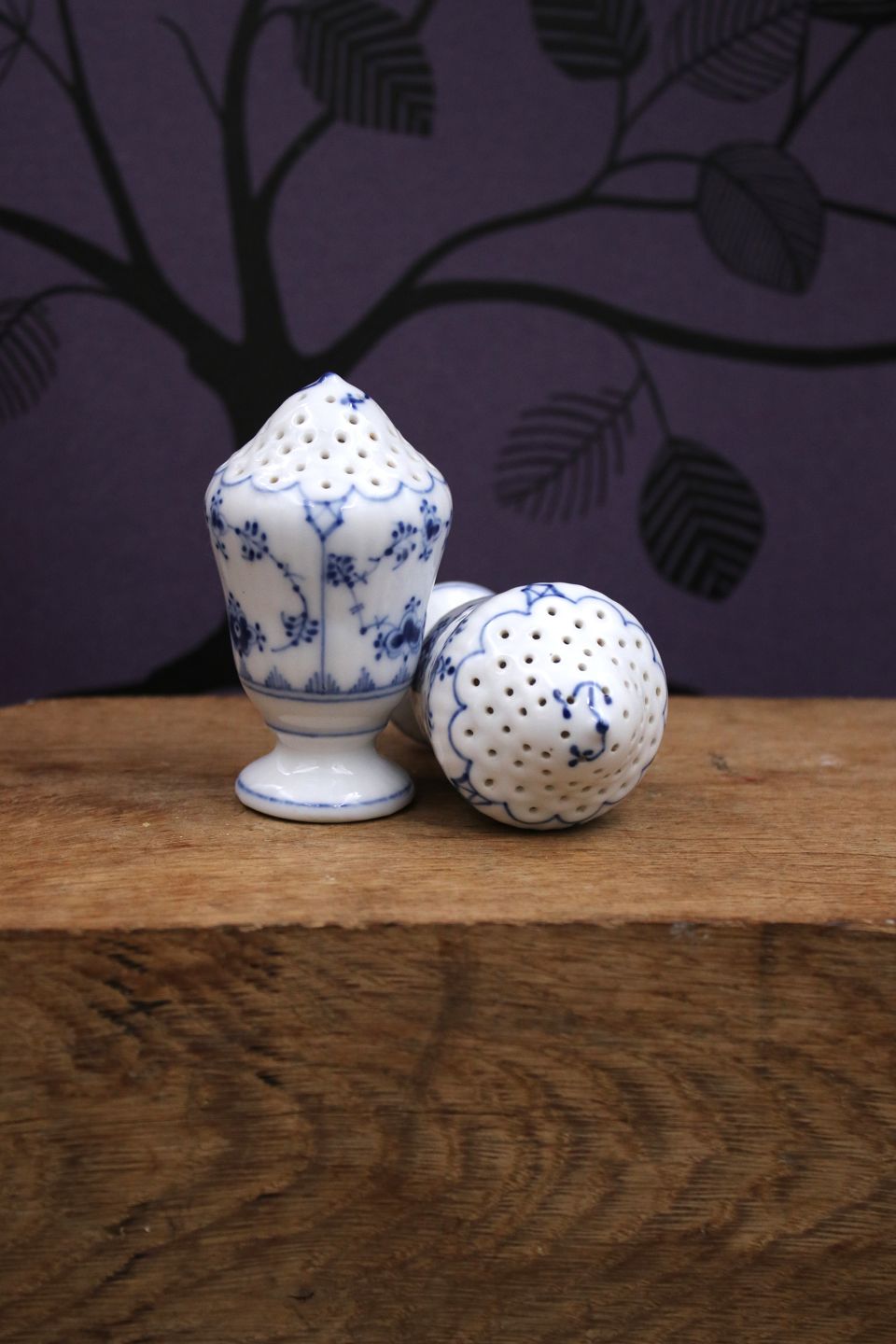 Salt & peber sæt i Musselmalet Riflet fra Royal Copenhagen.