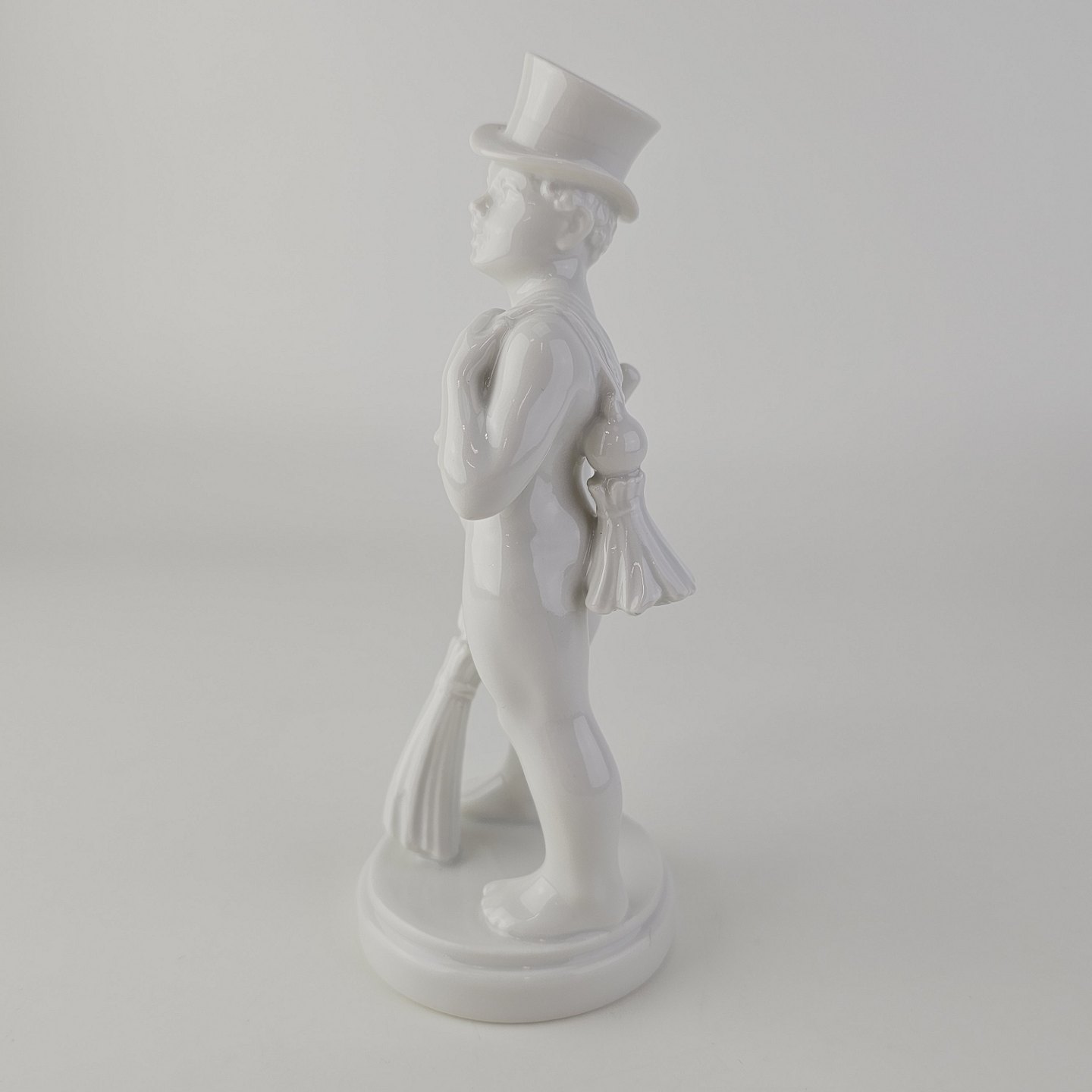 Figur i hvidt porcelæn med motiv af en skorstensfejer