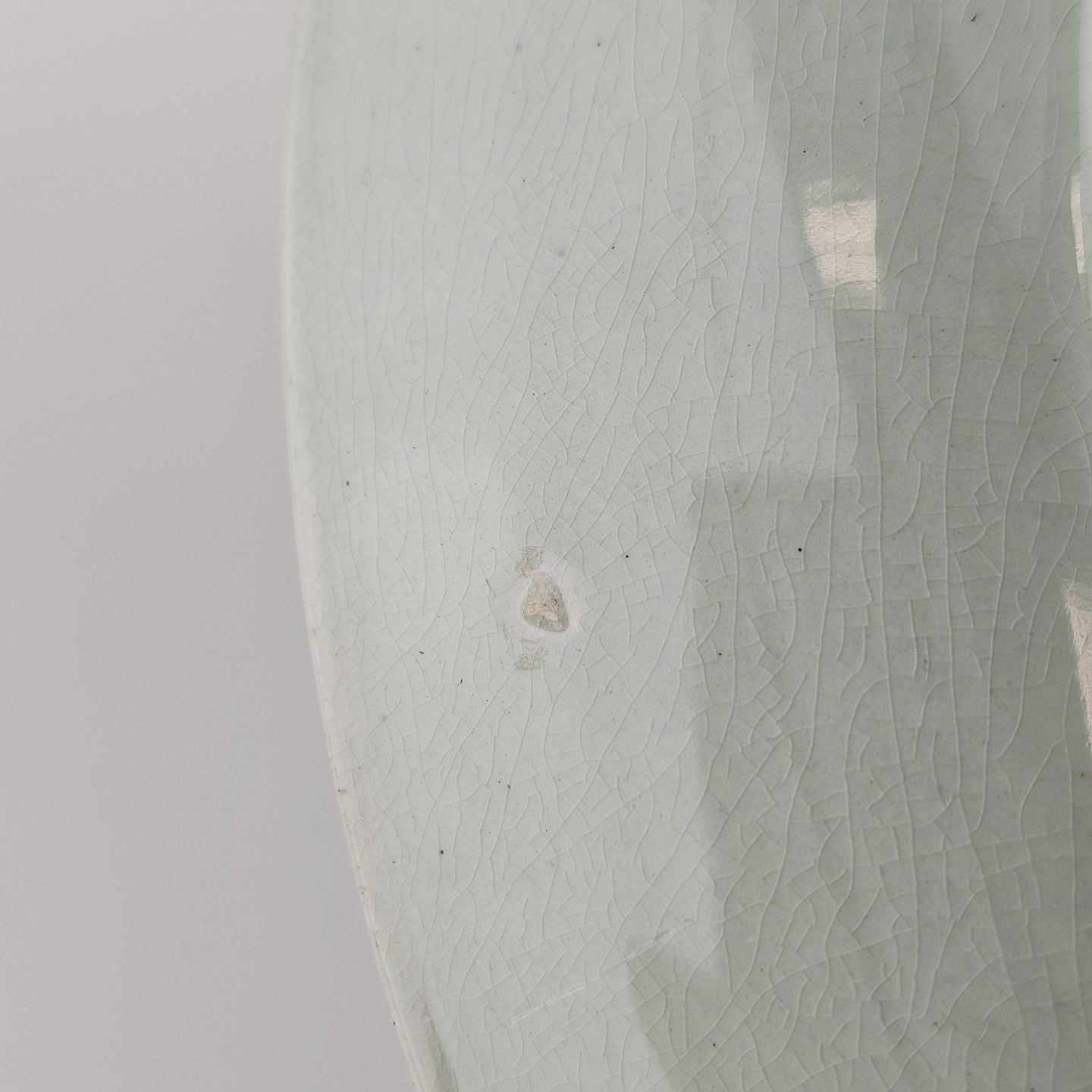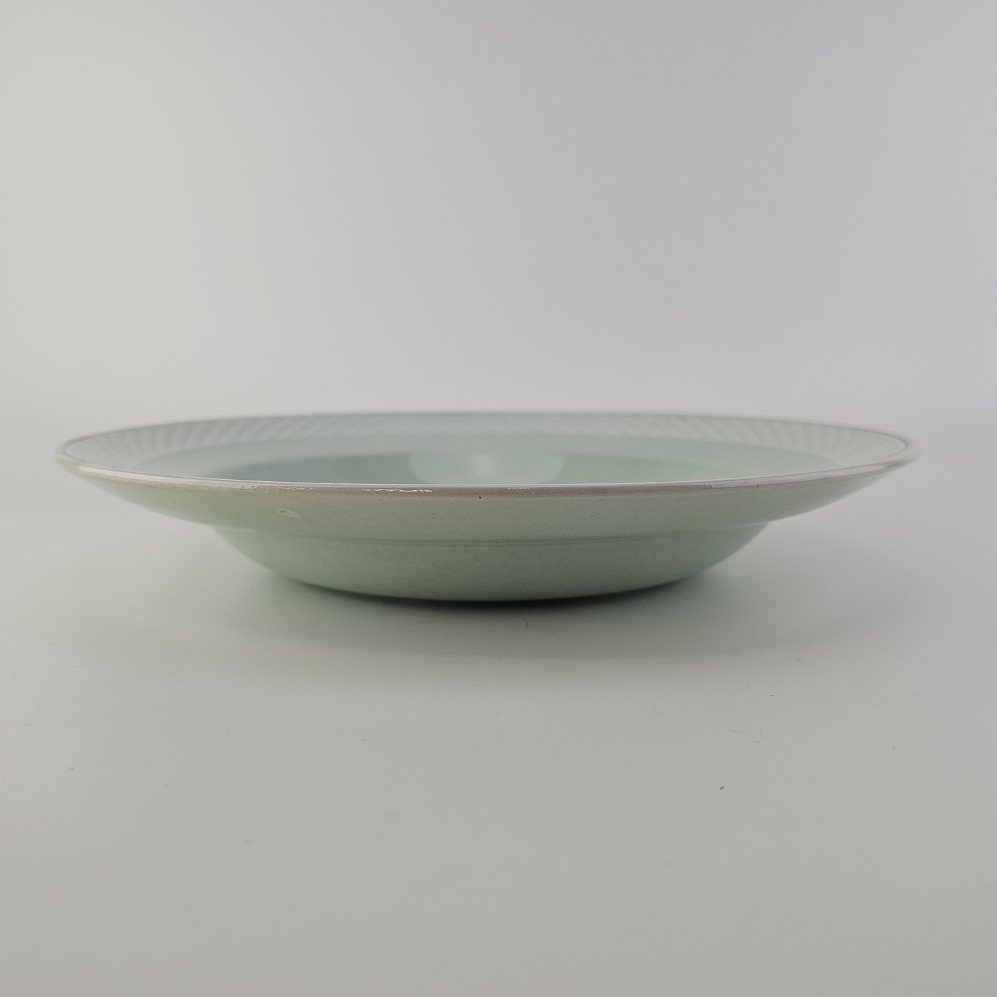 Stel i lysegrøn fajance med natur dekoration og flettet kant