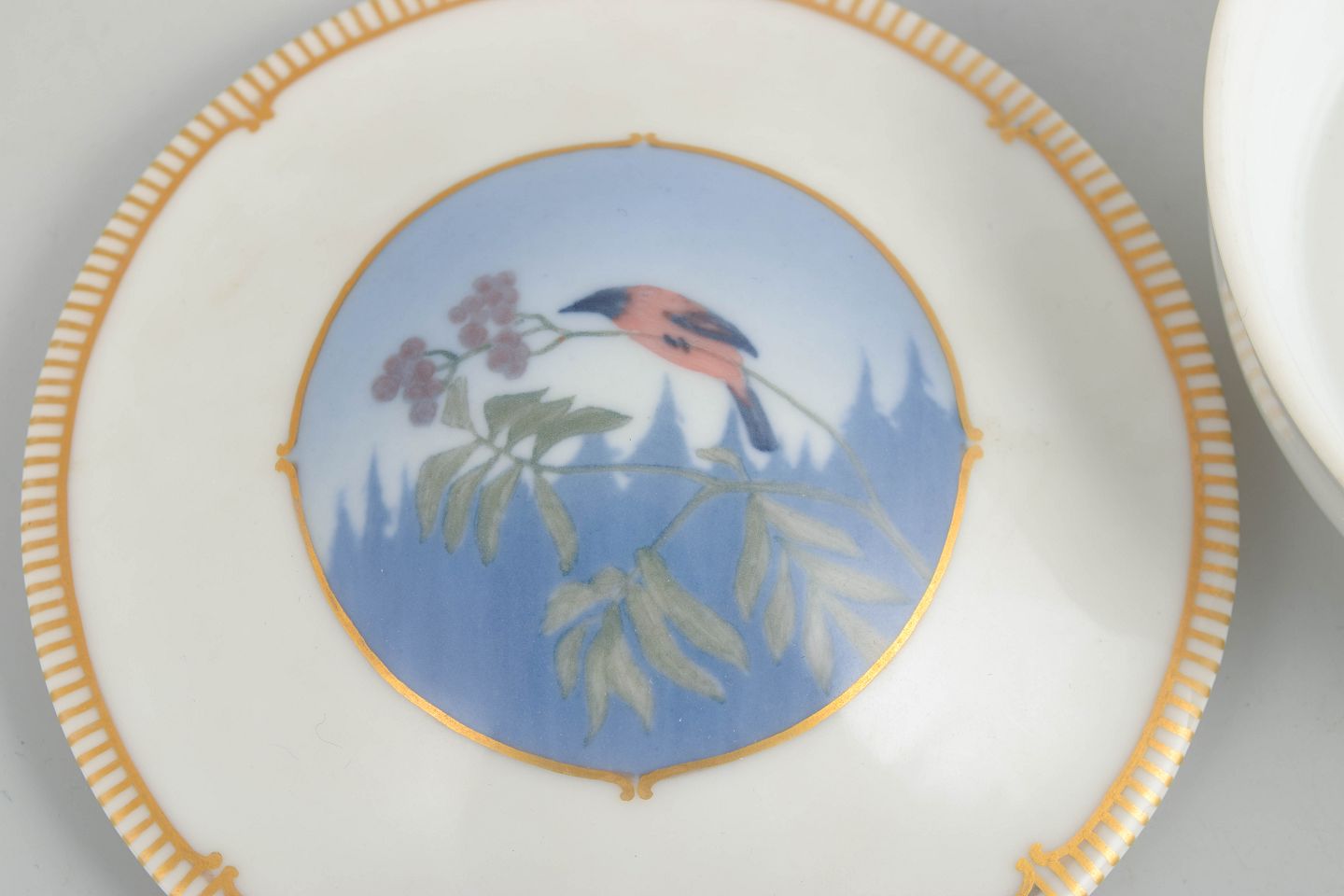 Royal Copenhagen is renowned for high-quality porcelain with refined underglaze and overglaze decoration. During the Art Deco period, classic forms were often paired with cleaner lines, contrasting colour panels, and decorative gilding, creating a distinctly elegant, period-typical expression.