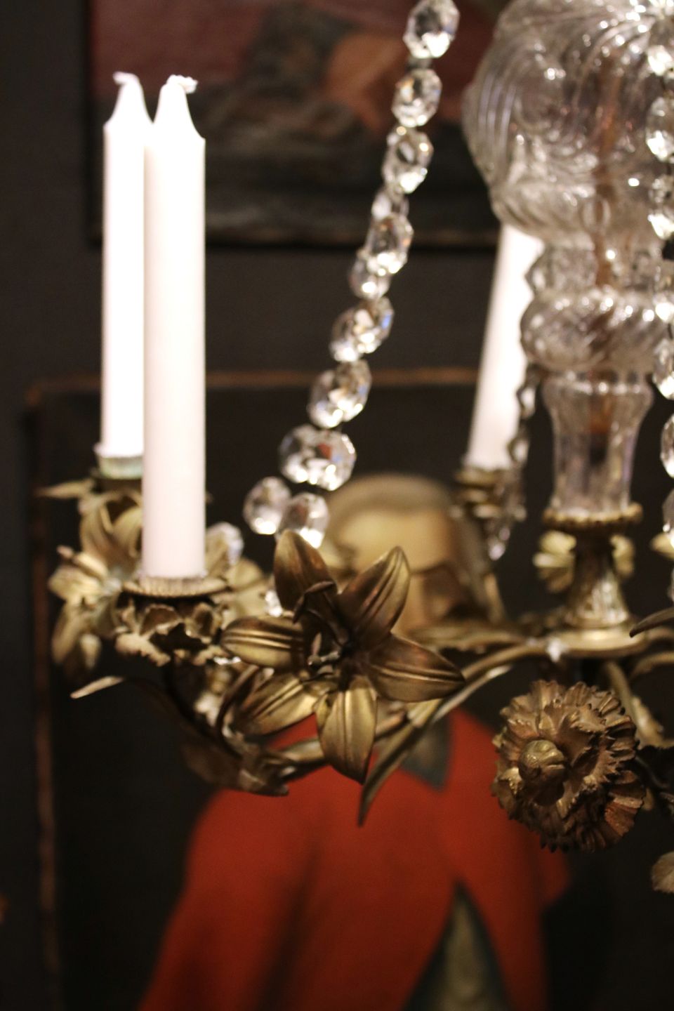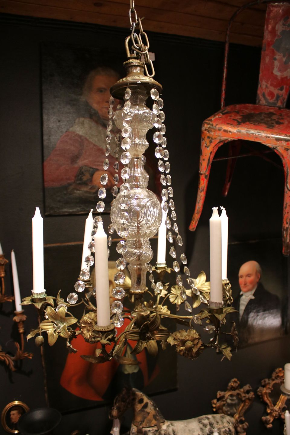 Antik , fransk lysekrone i bronze til stearinlys (6 stk.)