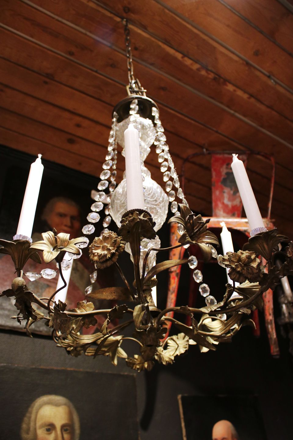 Vi tilbyder et bredt udvalg af gamle møbler med karakter , prismelysekroner og franske kirkestager.