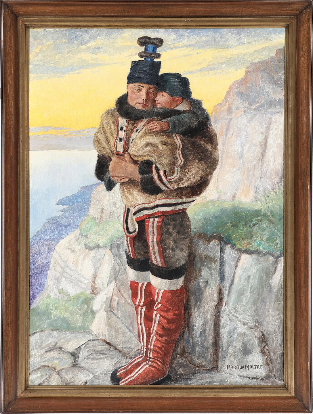 "Grønlandsk kvinde med barn" Olie maleri på lærred i god original stand.