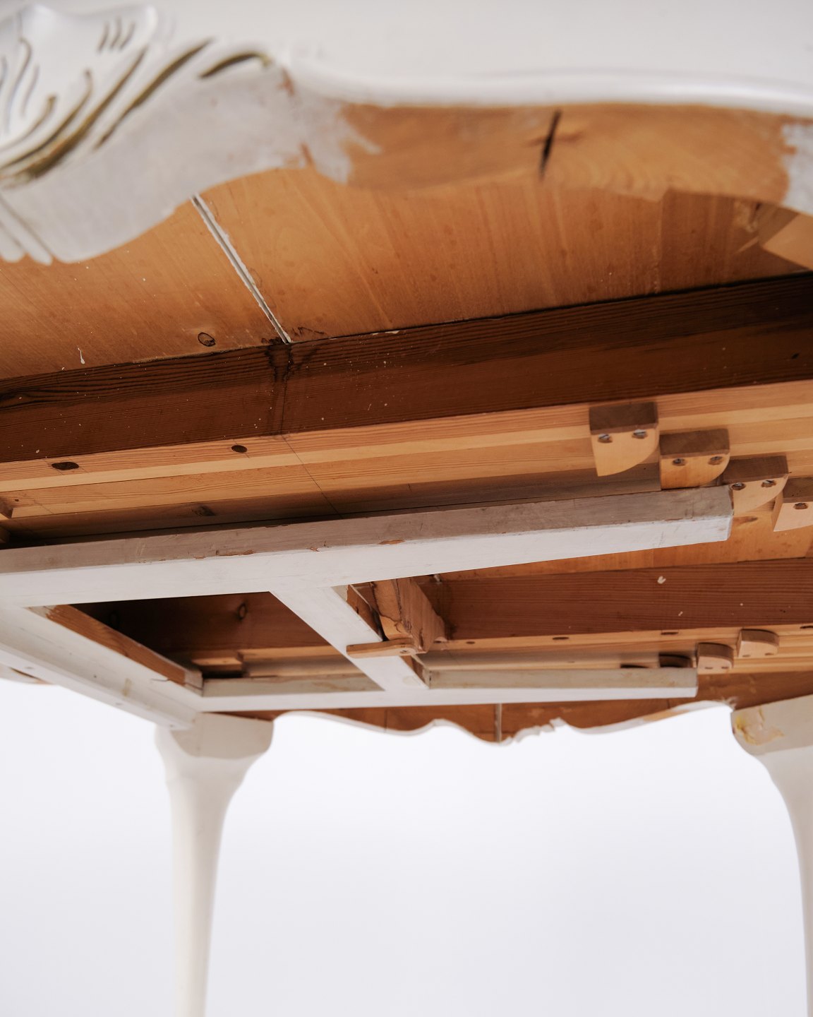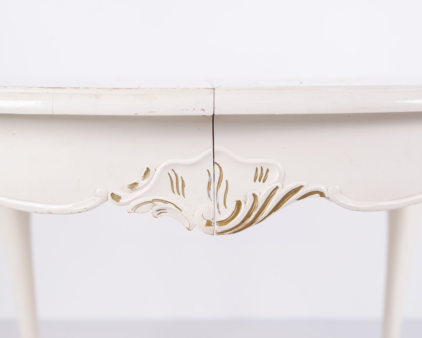 Antik Rundt Spisebord Med Udtræk - Ny Rokoko Stil - Hvidmalet Med Dekorative Detajler - År 1920erne