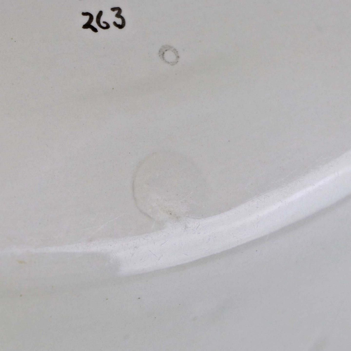 Oval serveringsskål i fajance fra stellet Kirsten, som blev fremstillet i perioden 1934-1957. Nr. 263