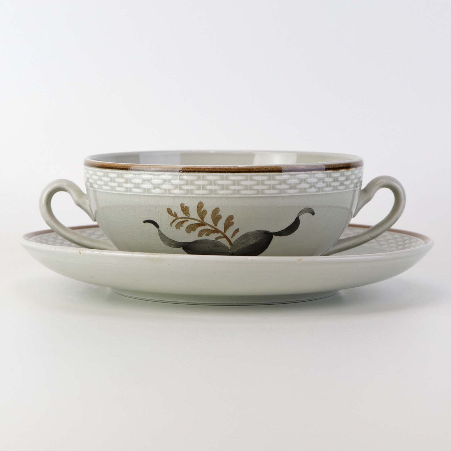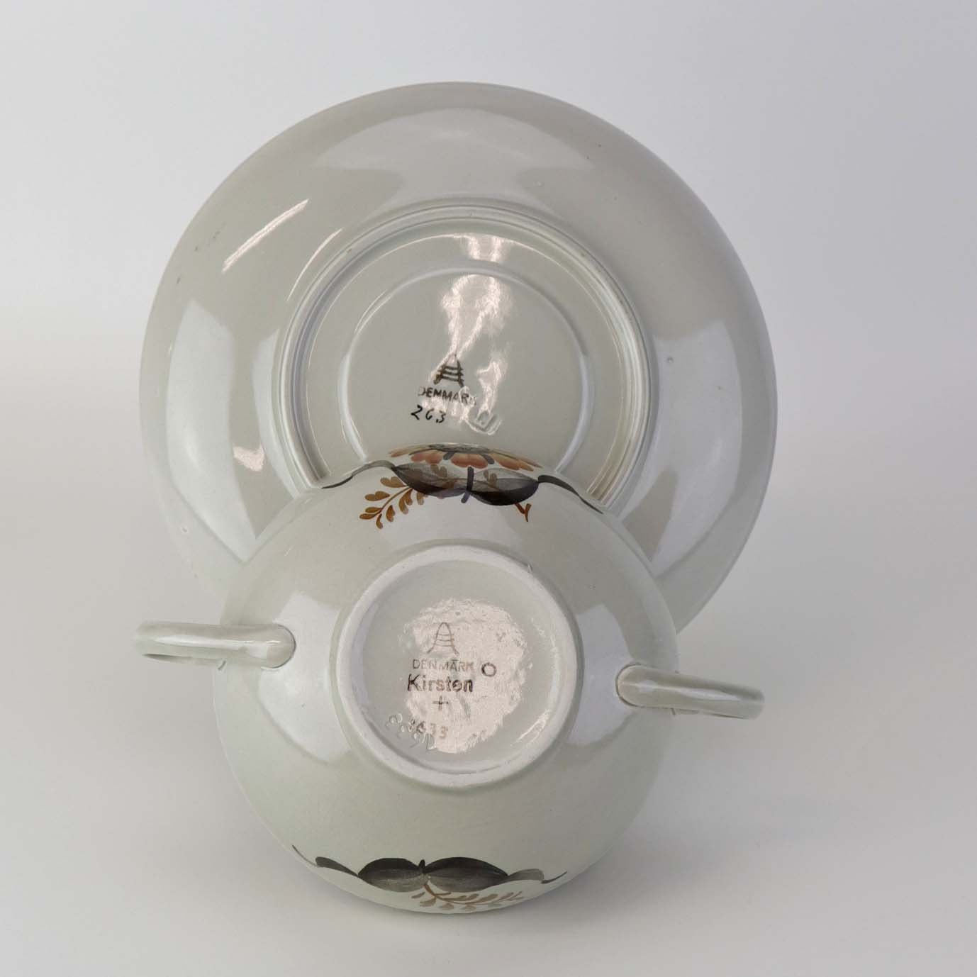 Suppekop med underkop i fajance fra stellet Kirsten, som blev fremstillet i perioden 1934-1957. Nr. 263/1633