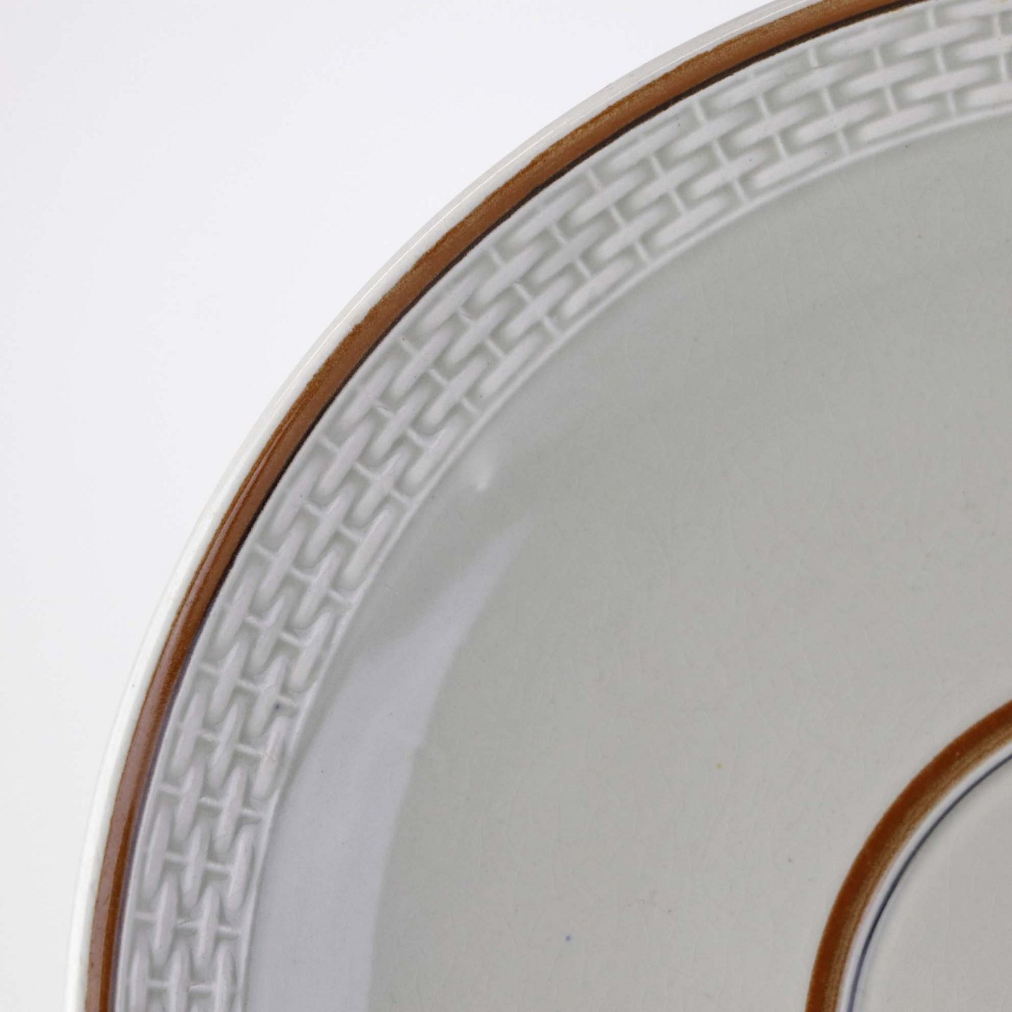 Fremstår med mindre misfarvning indvendig i glasuren samt spor efter brug på bagsiden af underkoppen.