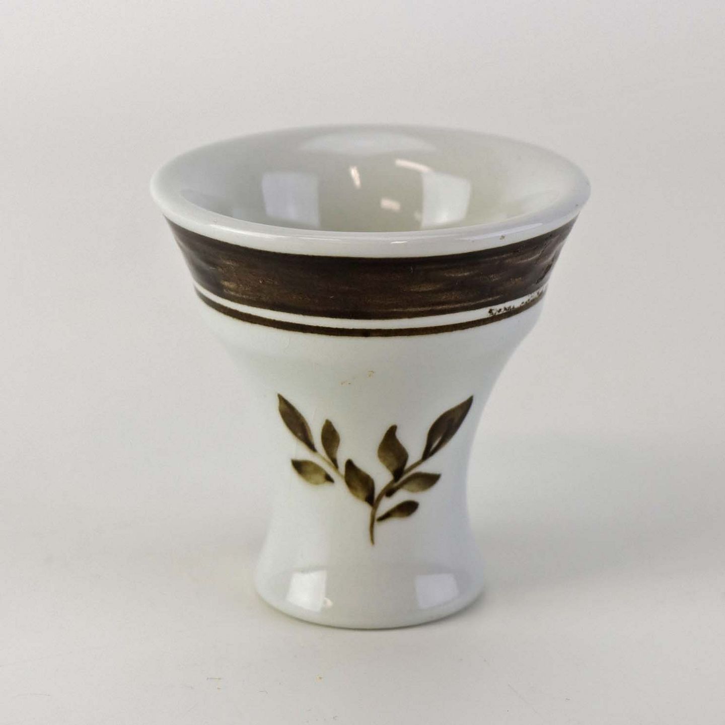 Æggebæger i fajance fra stellet Brun Tranquebar fra år 1919. Nr 45/1006