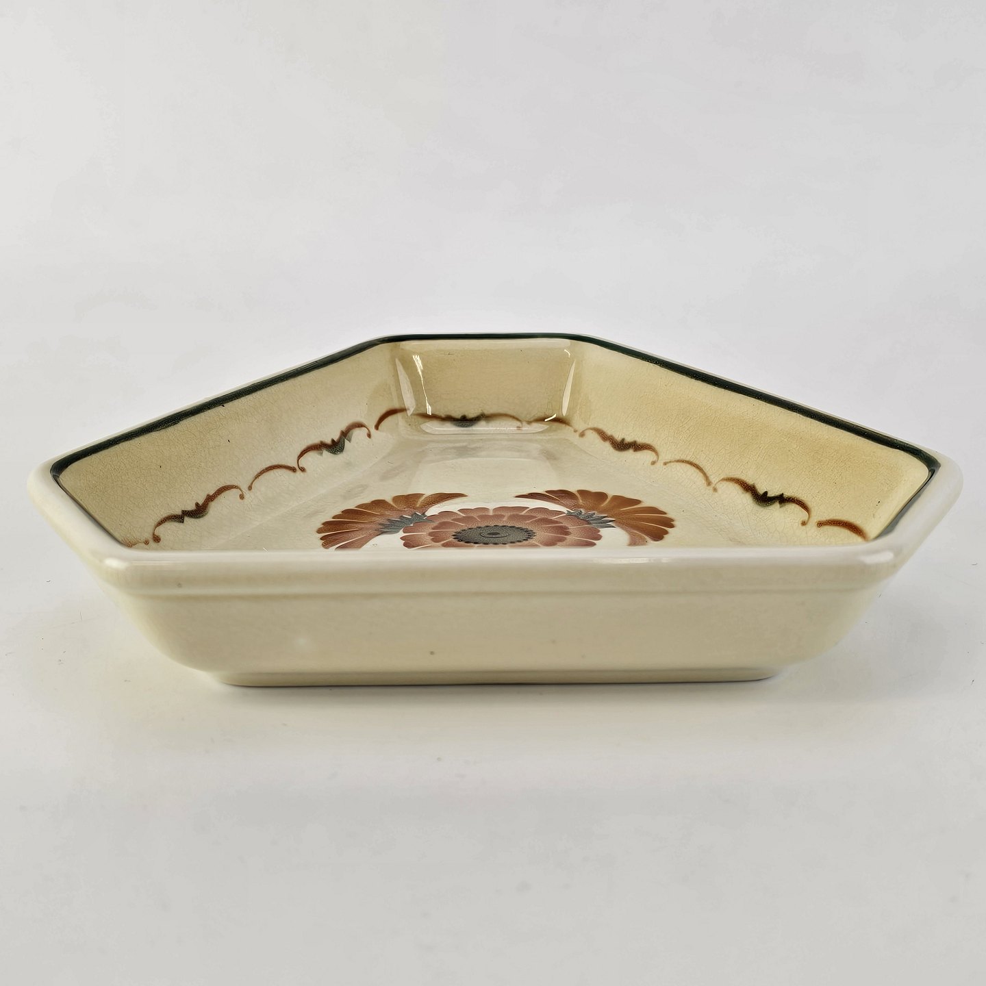 Plat de menage fad til salt, peber og sennep i fajance fra stellet Morgenfrue