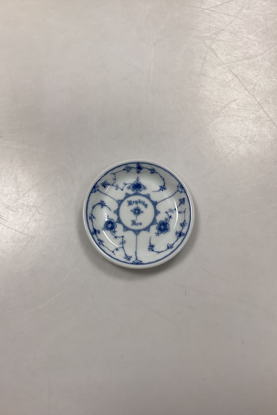 Bing and Grøndahl Blue Fluted Hotel with Logo, Small Plate No. 880. Logo from Krybily (Kryb i Ly) Inn.