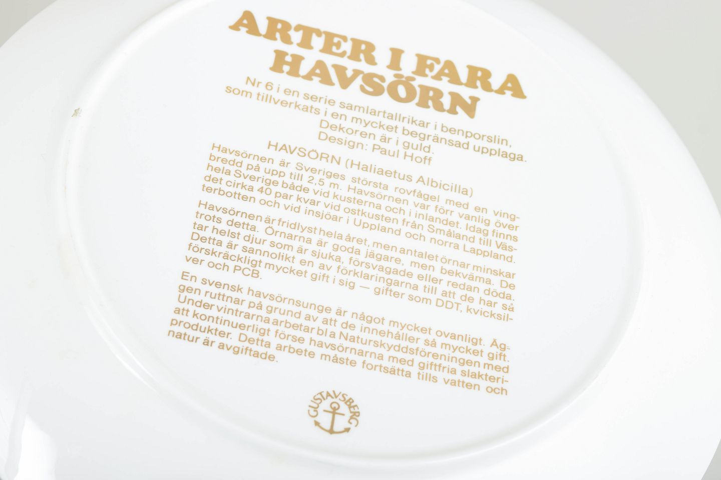 I 1980’erne lancerede Gustavsberg serien “Arter i fara”, som satte fokus på truede dyrearter gennem dekorative samlertallerkener. Serien kendetegnes ved detaljerede naturmotiver i metaldekoration kombineret med oplysende tekst på bagsiden og blev produceret i relativt begrænsede oplag.