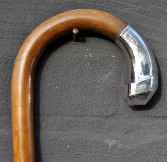 Stok i træ med sølvbeslag, 20. årh. Danmark.