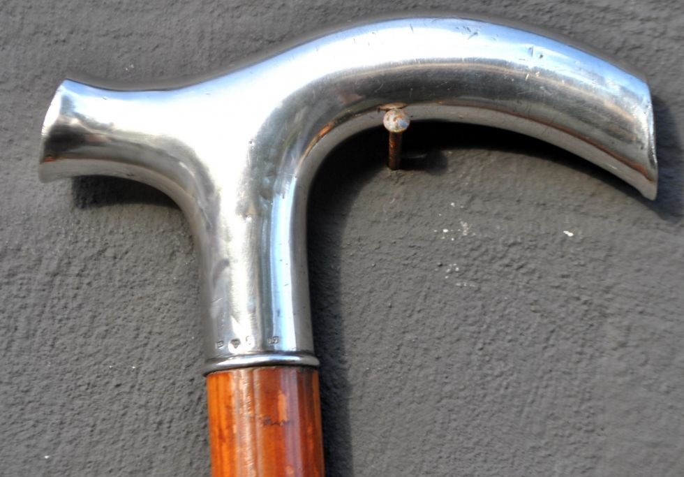 Stok i træ med sølvhåndtag, 1905, Sverige.