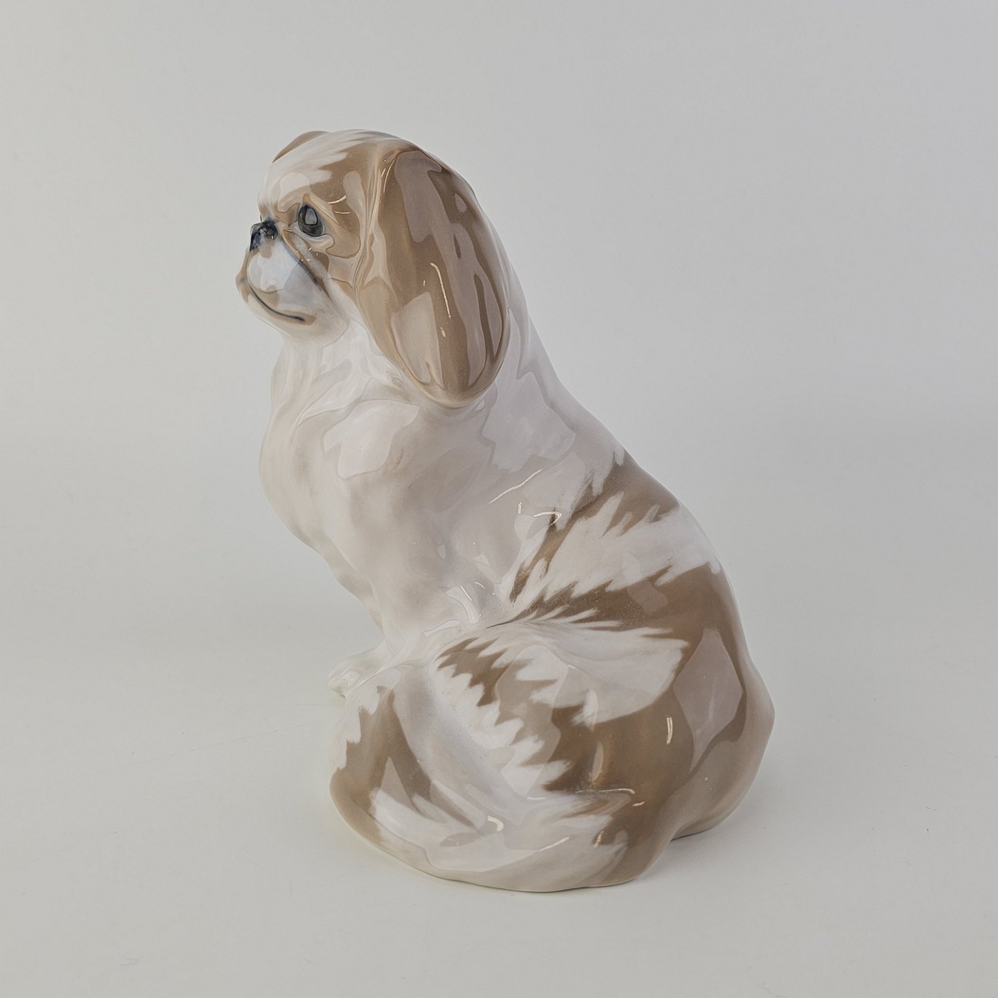 Figur i kongeligt porcelæn med motiv af en pekingeser hund