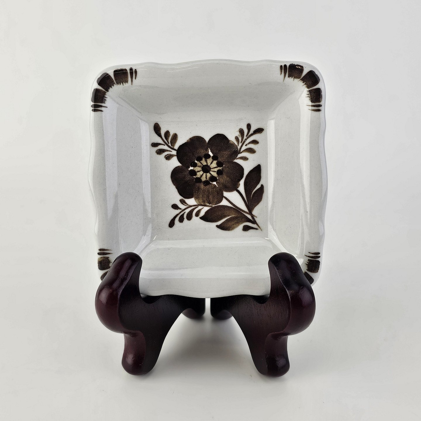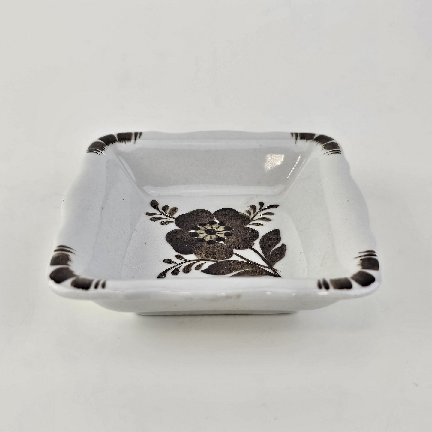Firkantet asiet i fajance fra stellet Brun Tranquebar fra år 1919